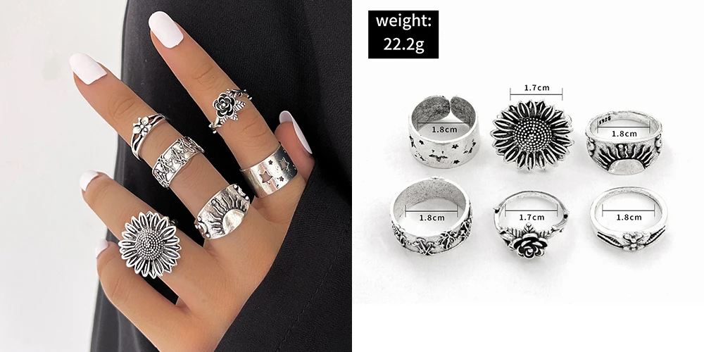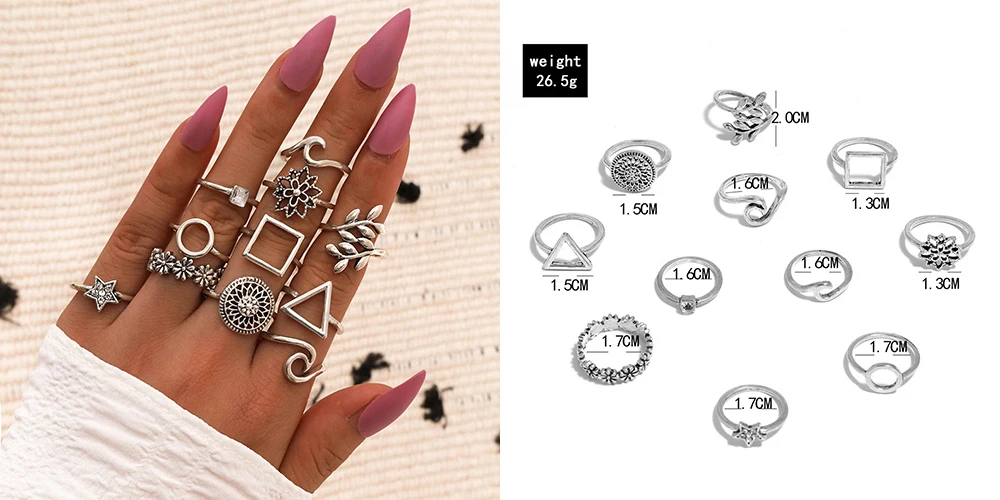 Набор колец в винтажном стиле для женщин и девушек, Ювелирное Украшение в готическом стиле с геометрическим дизайном, простые кольца на палец в богемном стиле, 2021