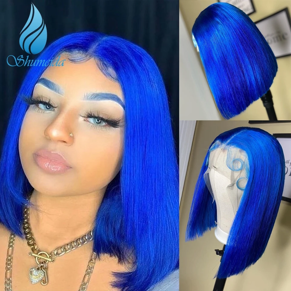 Синий парик, парик из человеческих волос, синяя глубокая волна, Цве...
