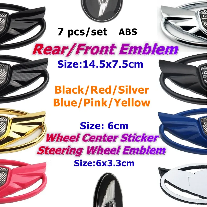 7 шт.компл. для Hyundai GENESIS Coupe логотип ABS Автомобильная Передняя Эмблема багажника Наклейка на руль значок колесо центр Переводные аксессуары