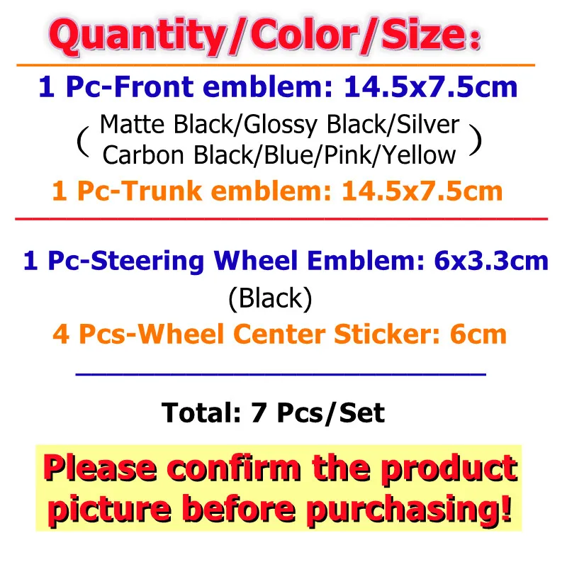 1 шт.: Передняя камера/багажник эмблема: 14,5x7,5 см (матовый черный/глянцевый черный/Углеродная сажа/серебристый цвет розовый, синий/желтый)