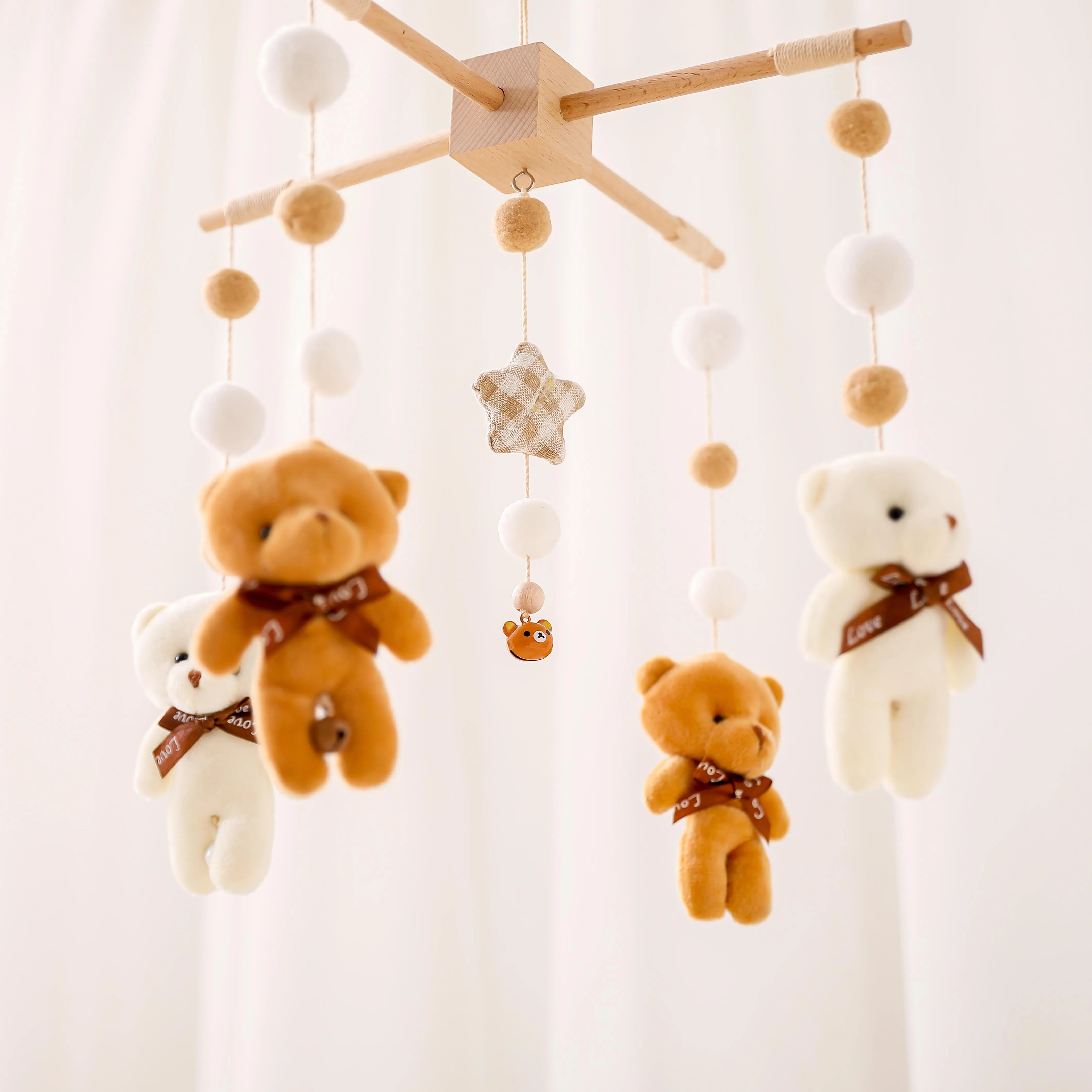 Мобиль для детской кроватки с мультяшными животными, Музыкальная шкатулка с погремушками для детской кроватки 0-12 месяцев, детская карусель, Обучающие игрушки ручной работы