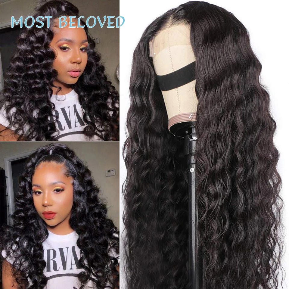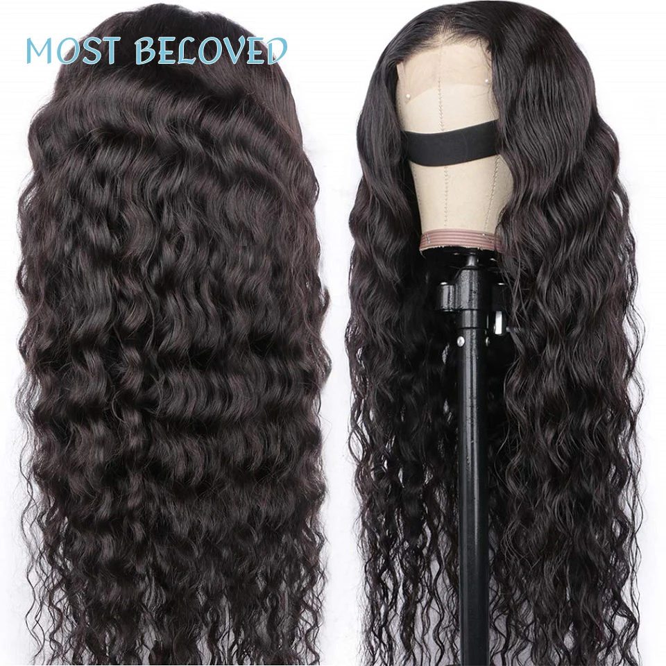 Глубокая волна парик Синтетические волосы на кружеве человеческих волос парики для чернокожих Women180 плотность Реми 13x4 вьющиеся волосы Кружева Закрытие парик