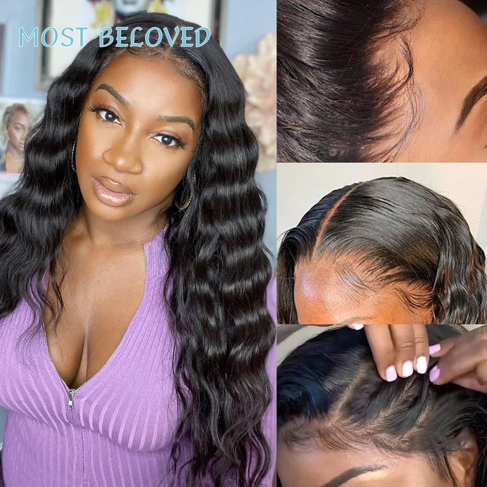 Парики с глубокой волной для фронтальной съемки, парики из натураль...