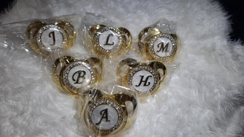 Золотая соска 26 инициальных букв СВЕРКАЮЩИЕ СЕРЕБРЯНЫЕ силиконовые...