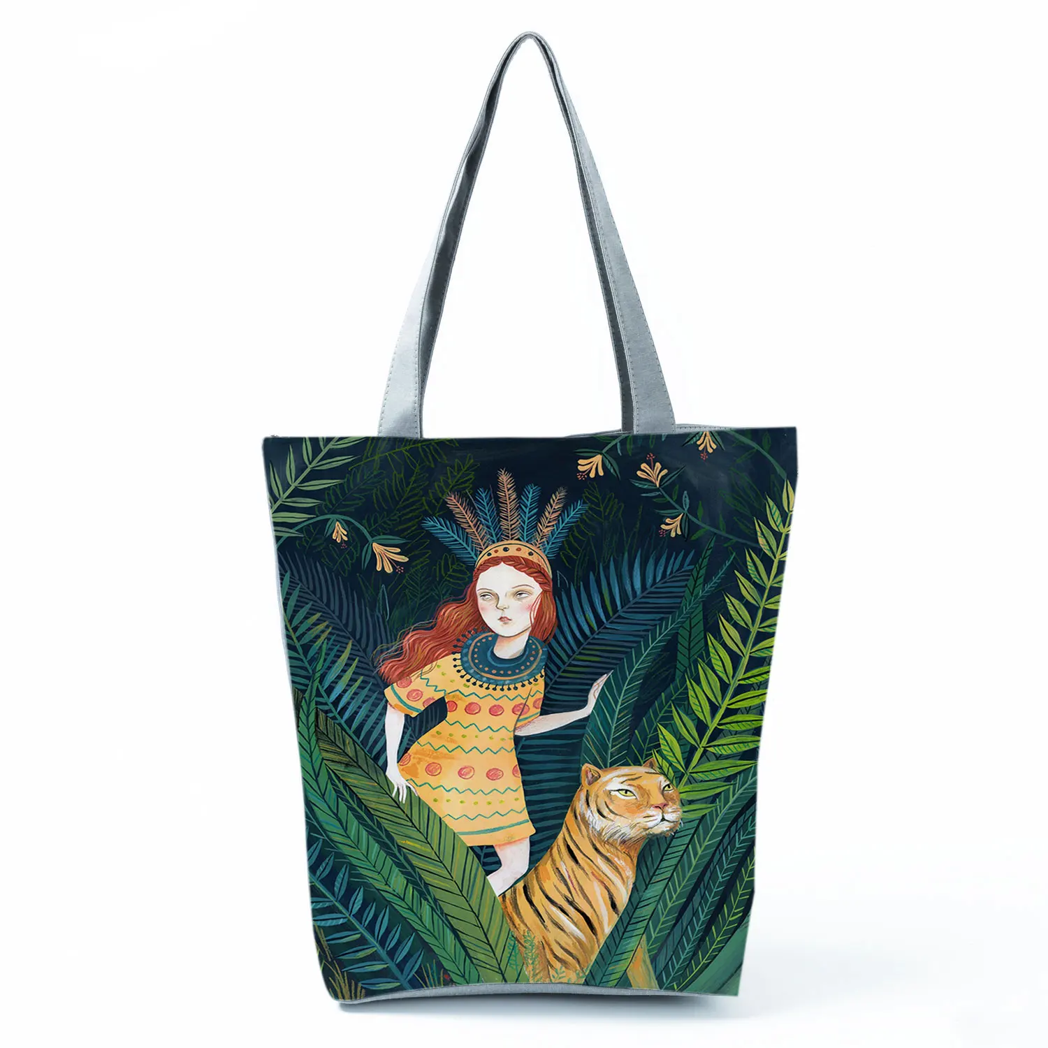 Сумки с леопардовым принтом для девочек, Освежающая модная сумка на плечо, Экологичная большая пляжная сумка, Портативная сумка для покупок