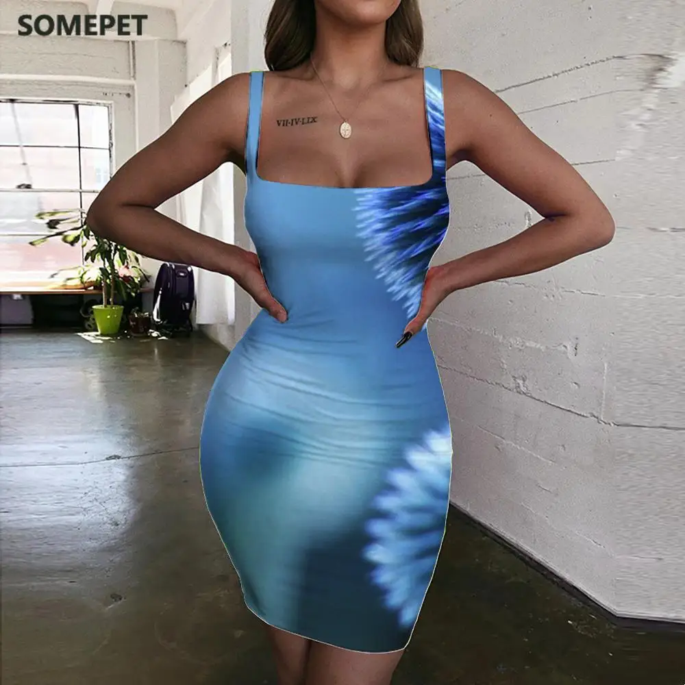 Сарафаны для женщин, платье неба, сексуальные платья с облаками, дамские платья, женская одежда без рукавов, короткая вечерняя одежда