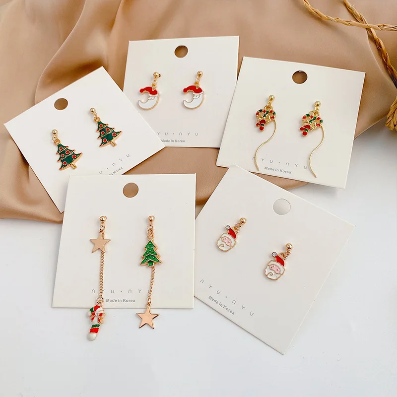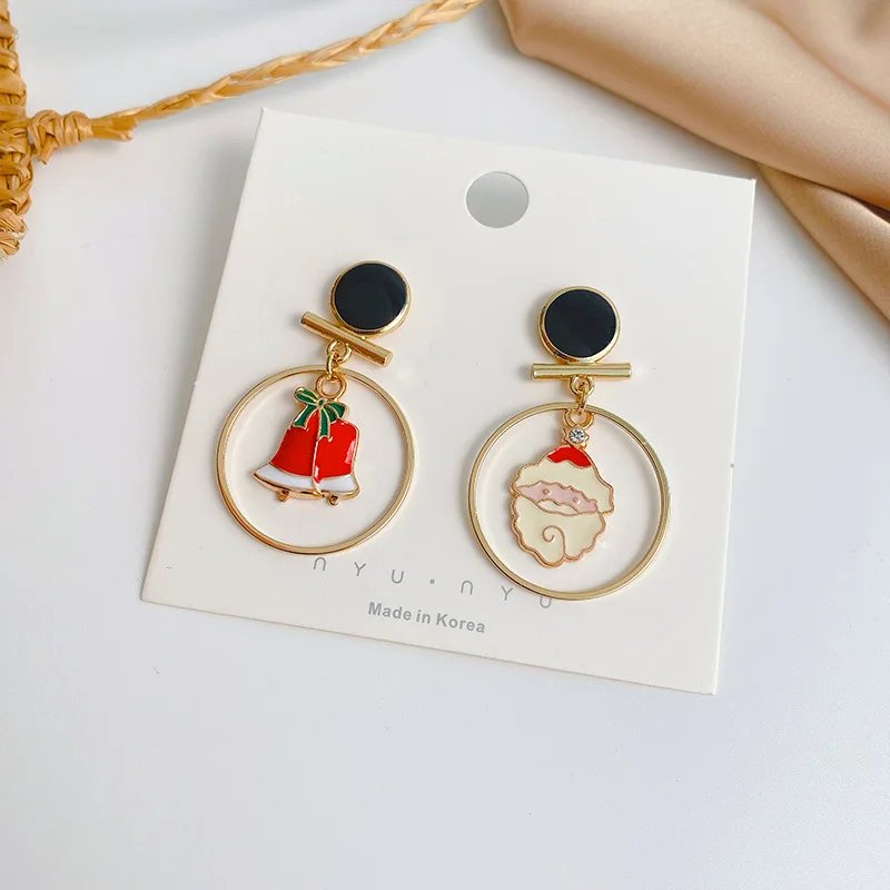 Модные золотые геометрические серьги-гвоздики в форме Луны и сердца, новые рождественские серьги с искусственным жемчугом, серьги Стразы для женщин и девочек