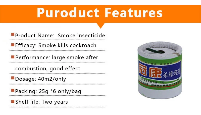 1. Основным ингредиентом этого продукта является бета-циперметрин. При использовании, дым инсектициды производят много дыма и проникают в каждый уголок комнаты. Когда такие вредители, как тараканы, мухи, комары, клопы в кровати соприкасаются с дымом, они умрют. Этот продукт является низкотоксичным продуктом, поэтому люди и домашние животные должны покидать комнату во время использования. 2. Потому что это инсектицид дыма, поэтому он имеет характеристики быстрого, круглого уничтожения. Область применения на 1 шт составляет около 15 квадратных метров. Чем больше количество использования закрыто в помещении, тем лучше эффект. Инструкции по использованию1. Инсектицид дыма. Дым быстро убивает вредителей во всех направлениях. Купите один раз в упаковке 4 шт. 2. Закройте двери и окна перед использованием, чтобы сделать комнату максимально герметичной и обработать постельные принадлежности, одежду, продукты питания и столовые приборы, чтобы предотвратить загрязнение. (Обязательно Определите отсутствие утечки газа в помещении перед использованием) 3. Откройте крышку аэрозоля и поместите дым на негорючие. Зажгите предохранитель, чтобы создать дым. После использования люди и домашние животные немедленно покидают комнату. 4. После 2-4 часов курения Откройте двери и окна, а затем снова зайдите в комнату после достаточной вентиляции. Примечание1. Этот продукт будет генерировать много дыма при использовании, например, установка дымовой сигнализации, обратите внимание.2. Рыба и домашние животные не должны храниться в комнате, а посуда и еда должны храниться заранее.3. Не позволяйте детям играть и использовать этот продукт отдельно.4. Если в семье есть беременные женщины и люди пожилого возраста, пожалуйста, используйте их с осторожностью.