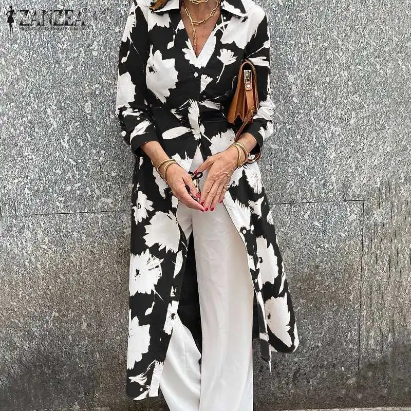 ZANZEA, Элегантное Длинное Платье-рубашка, летний женский сарафан, ...