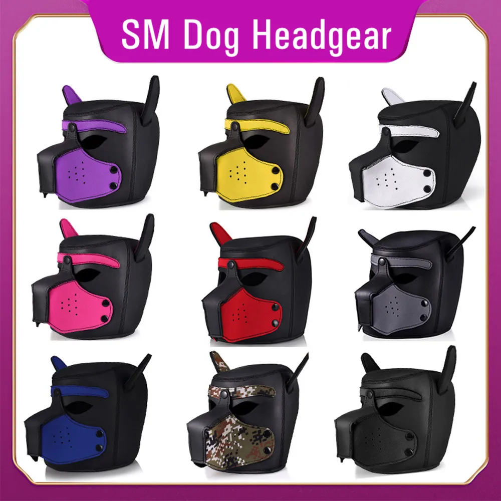 Маска для ролевых игр на Хэллоуин, головной убор, Мягкие латексные резиновые маски для вечеринки, щенок, косплей, уши, БДСМ комплект, эротические аксессуары для мужчин