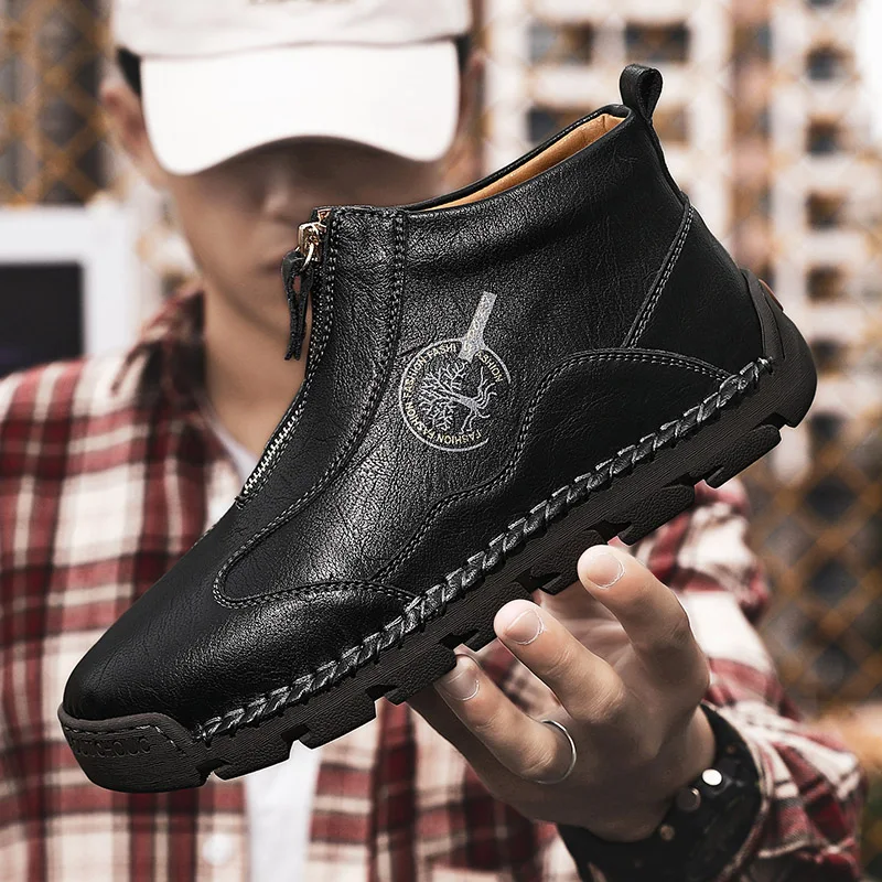 Брендовые зимние мужские ботинки, плюшевые теплые мужские зимние ботинки, роскошные мужские кожаные ботинки, металлические уличные римские мотоциклетные ботинки на молнии