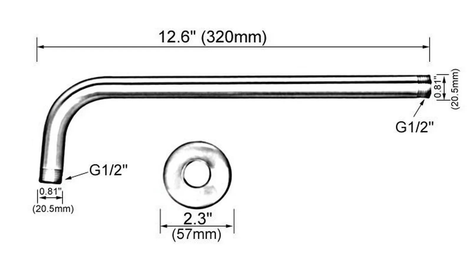 Полированная серебристая хромированная настенная насадка для душа удлинительная трубка-12 дюймов длинная настенная Насадка-Душевая насадка 2sh103