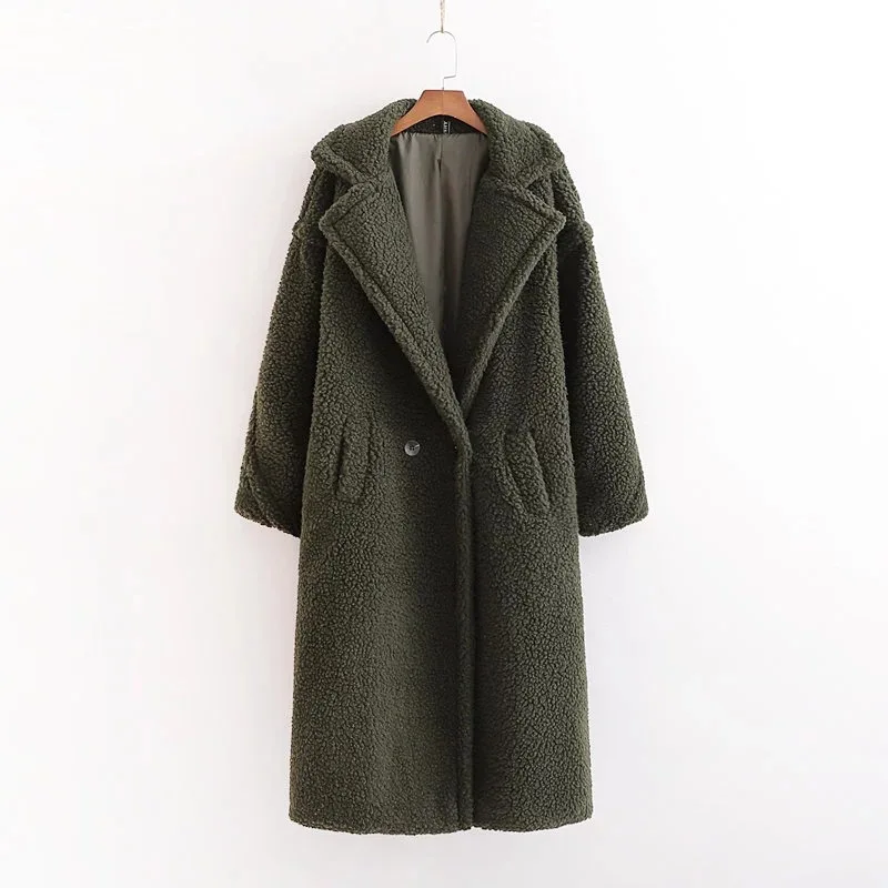 Куртка женская зимняя из искусственной овечьей шерсти, с длинным рукавом