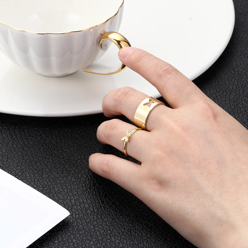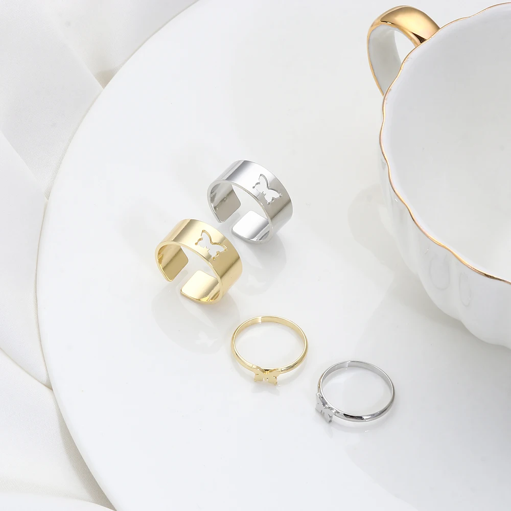 Масса 2021, модное простое кольцо с золотой бабочкой, набор колец д...