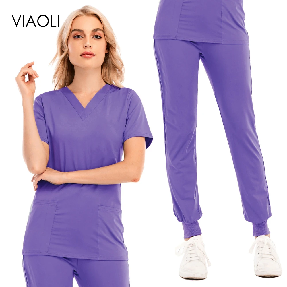 Униформа унисекс Viaoli, топ с коротким рукавом и штаны, одежда для...