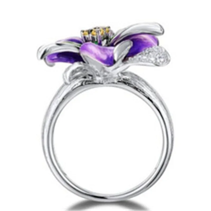 Модное изящное дизайнерское кольцо Milangirl с фиолетовыми Эпоксидными цветами и желтыми кристаллами для женщин кольца с цирконием ААА ювелирные изделия