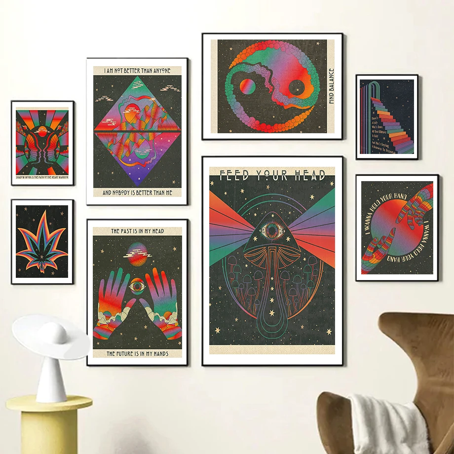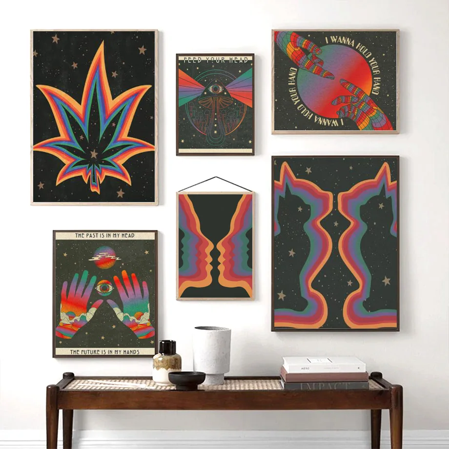 Психоделическая Карта Таро с грибом Бохо винтажная настенная живопись на холсте скандинавские плакаты принты настенные картины для декора гостиной