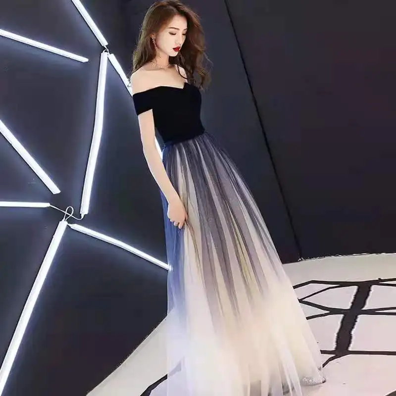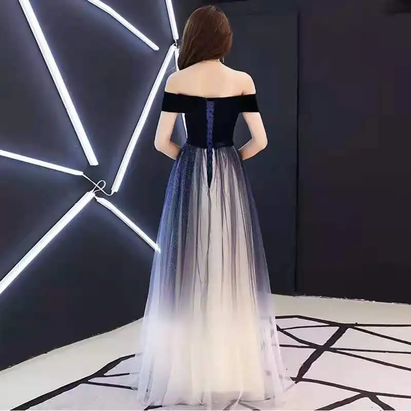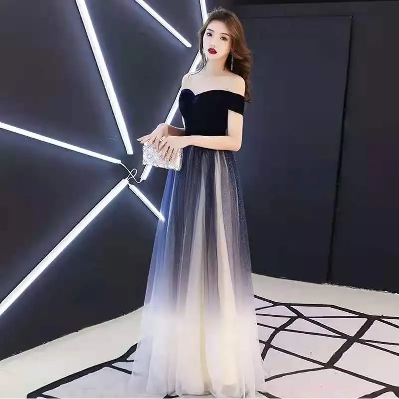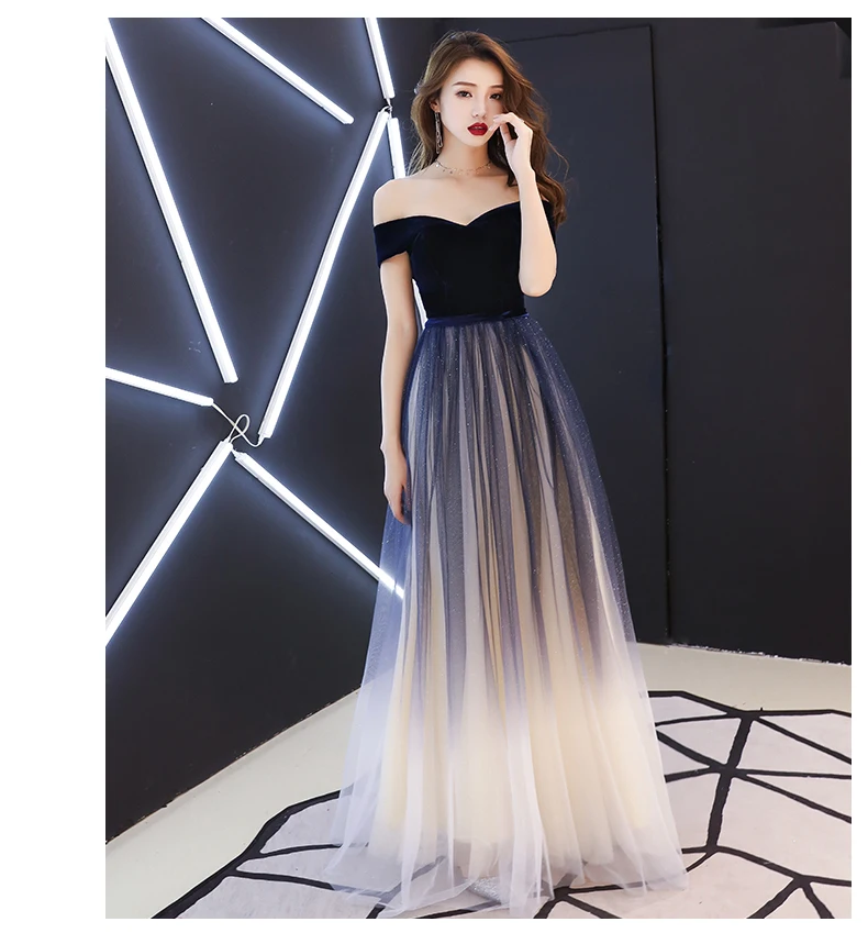 Женское вечернее платье, темно-синее длинное платье с блестками, для выпускного вечера