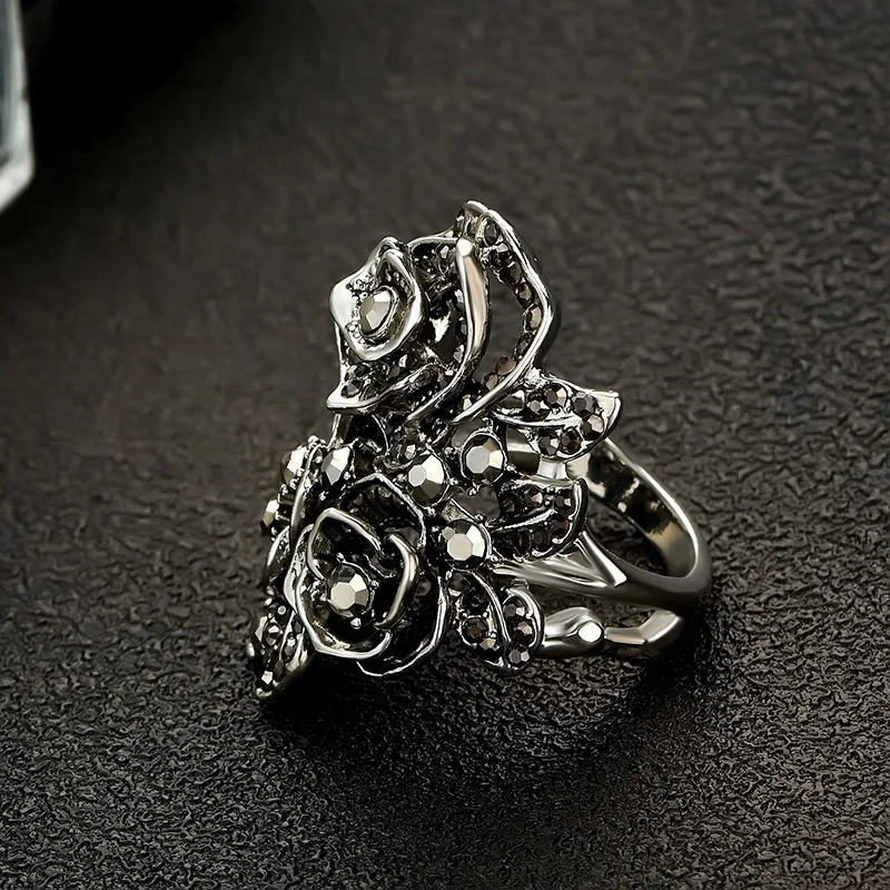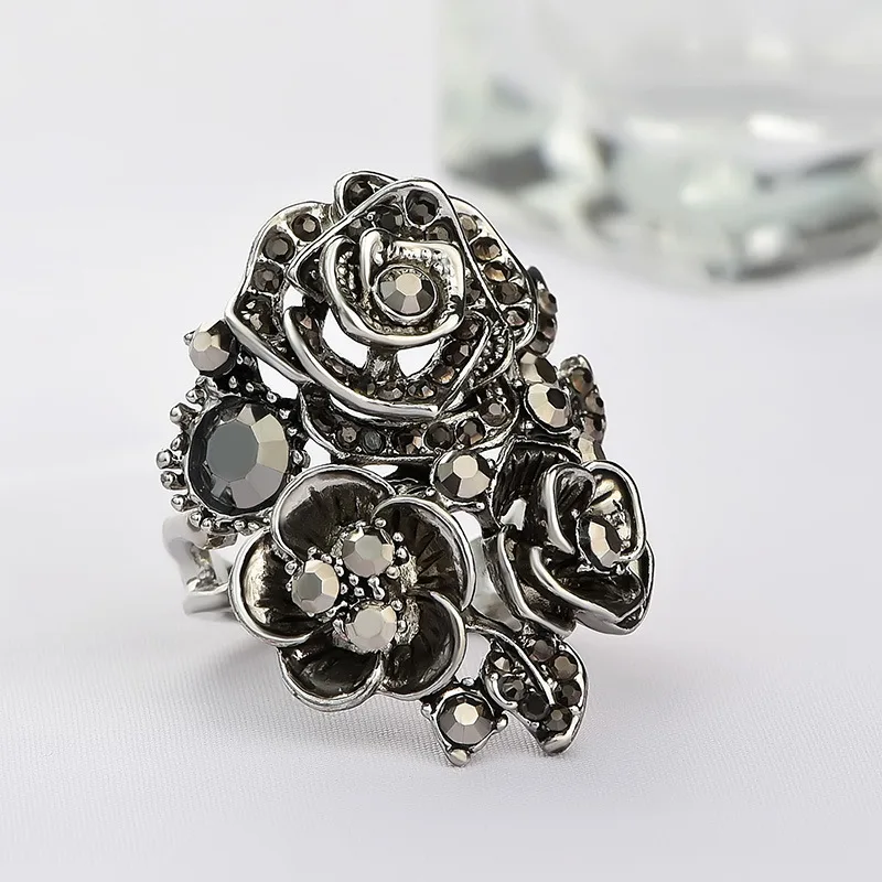 Креативное женское кольцо в старинном стиле серебряного цвета с черной розой, женское кольцо для женщин, ювелирные изделия для вечеринок, аксессуары для рук