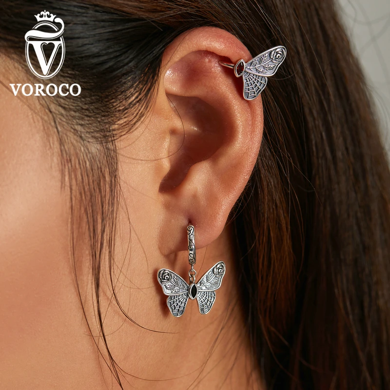Женские винтажные серьги-манжеты Wostu, из стерлингового серебра 925 пробы с бабочками, Подарочные ювелирные изделия из серебра 925 пробы