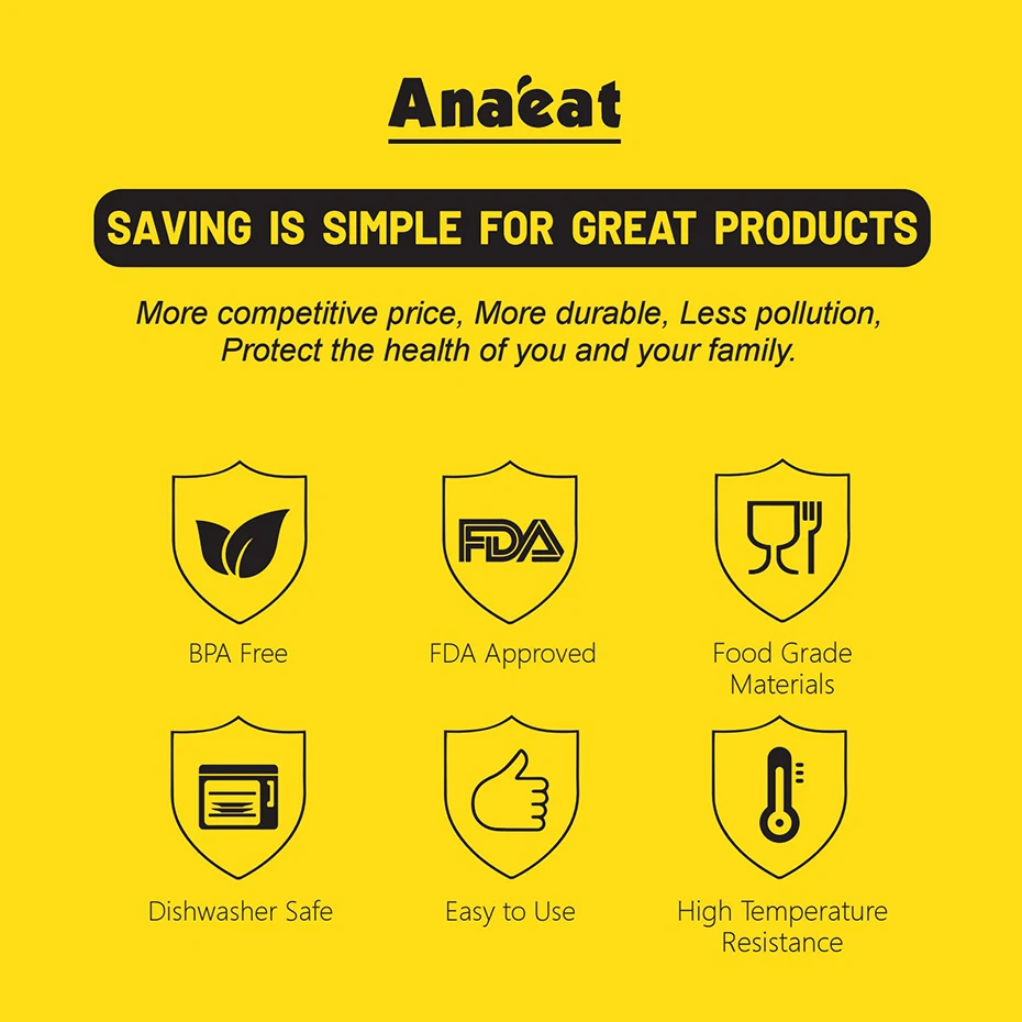 Мы так уверены, что у нас есть лучшие Кухонные принадлежности и формы для выпечки на рынке. Если у вас есть какие-либо проблемы с продуктами Anaeat, не стесняйтесь отправить нам сообщение Aliexpress, и мы немедленно отправим вам его бесплатно или полностью вернем деньги. Мы очень заботимся о каждом заказе и стараемся предоставить нашим клиентам здоровые и прочные кухонные принадлежности.