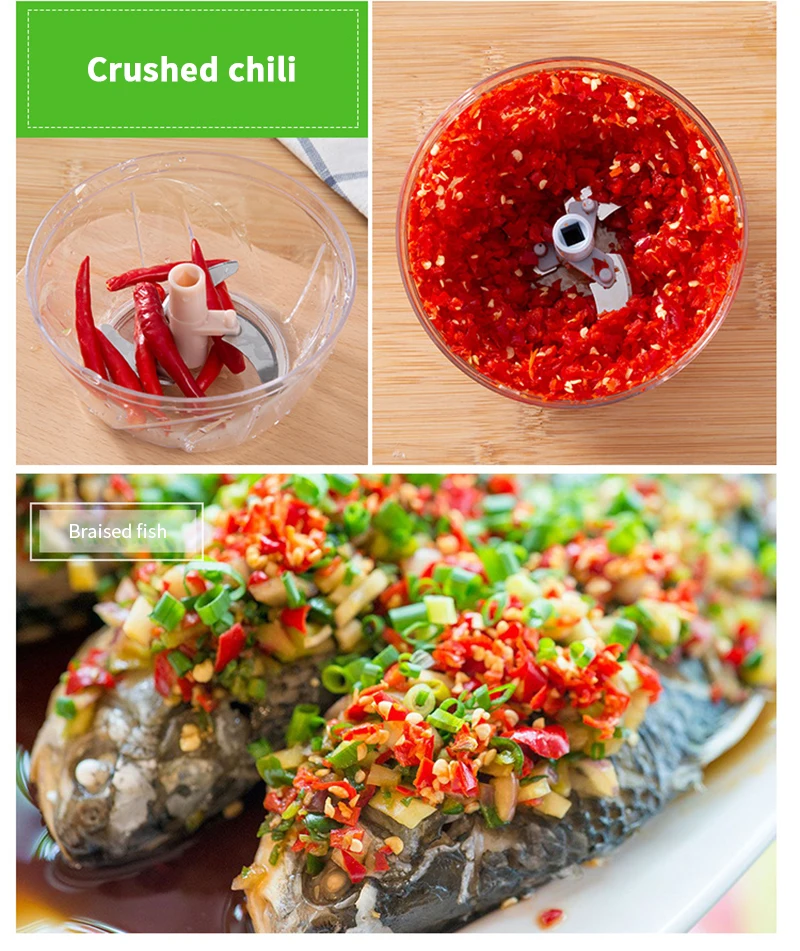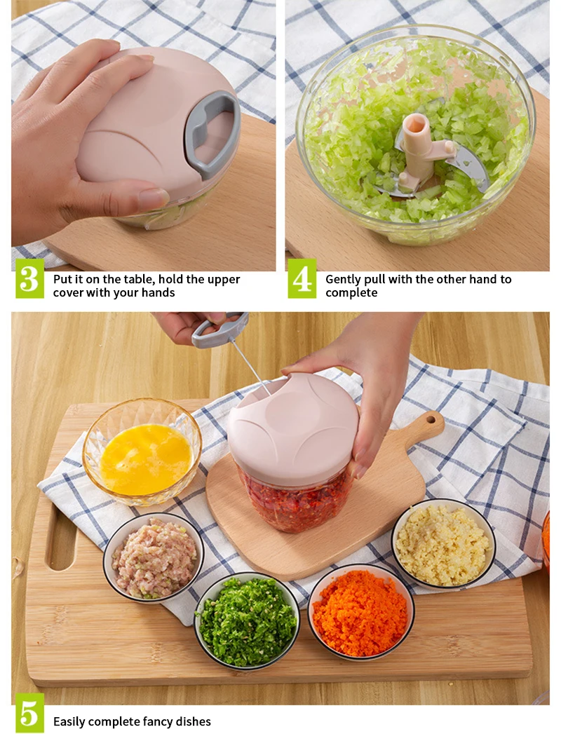 1. Простая Работа:Потяните веревку, чтобы перемешать такие продукты, как перец, чеснок, фрукты и т. д.
