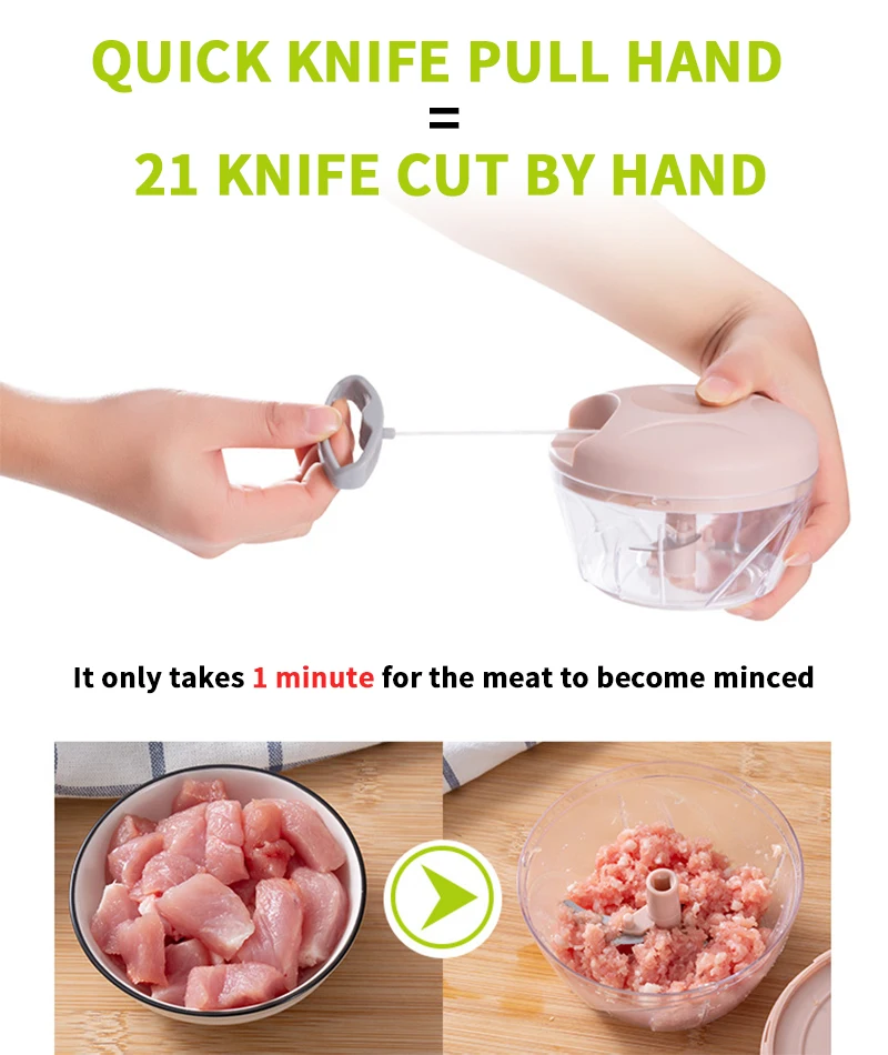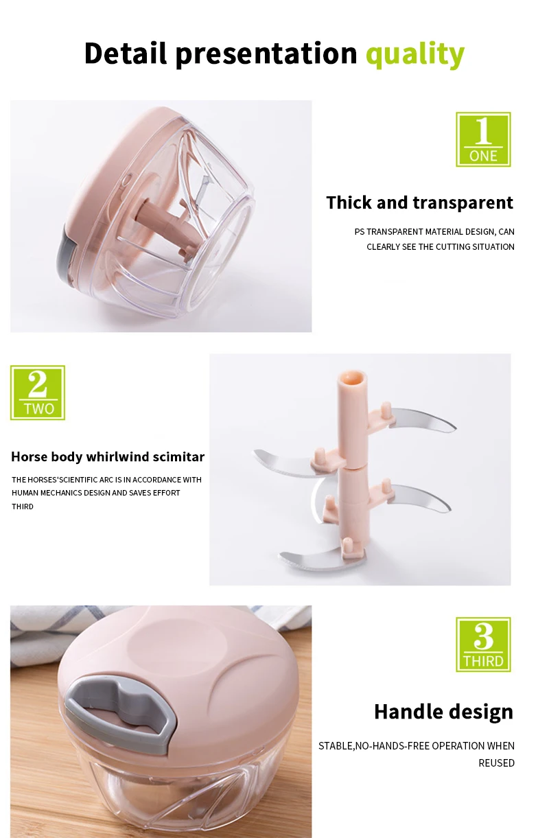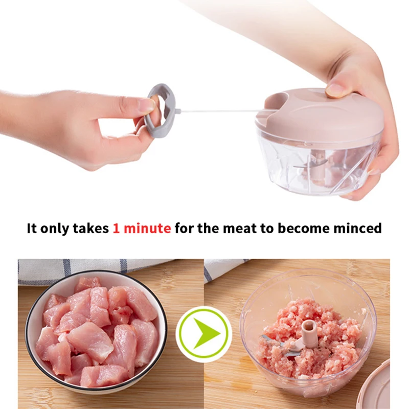 5. Первый выбор для кухни:Прочный шнурок, нескользящая основа, прозрачный корпус, ультра-острое лезвие из нержавеющей стали, все для вашего безопасного и удобного дробления пищи. Это кухонный инструмент для вашего первого выбора.