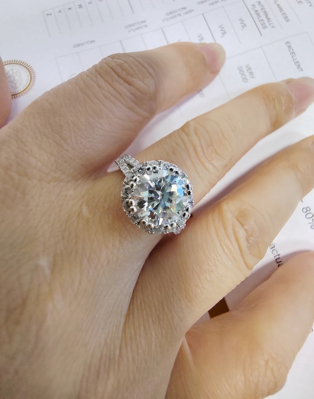 Классическое кольцо из серебра пробы с муассанитом 1CT VVS1 D