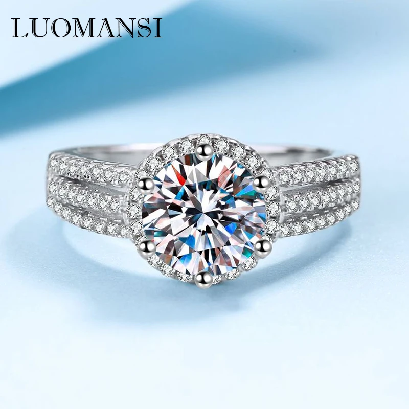 Luomansi 2 карата 3 карата 9 мм Муассанит серебряное кольцо с сертификатом GRA S925 ювелирные изделия Свадебная вечеринка подарок для женщины