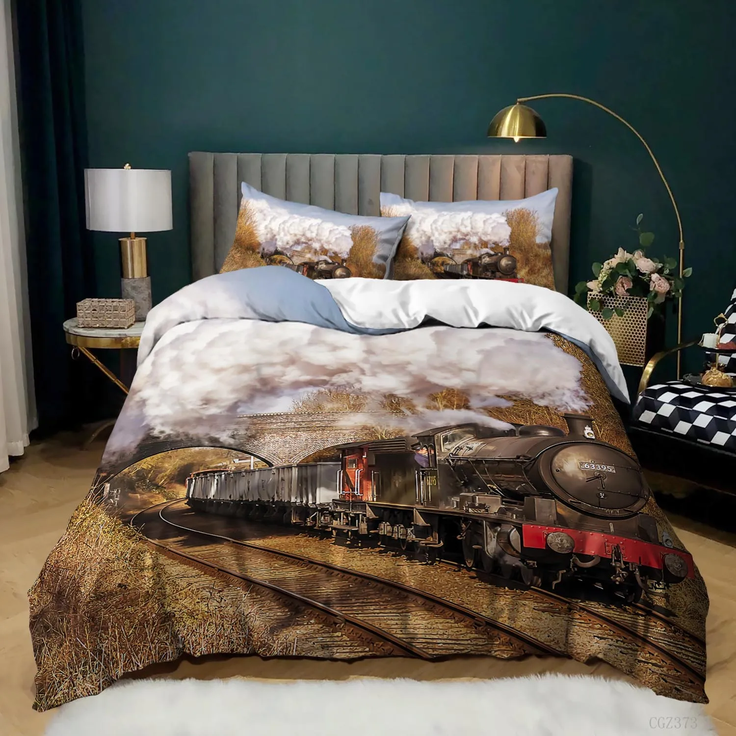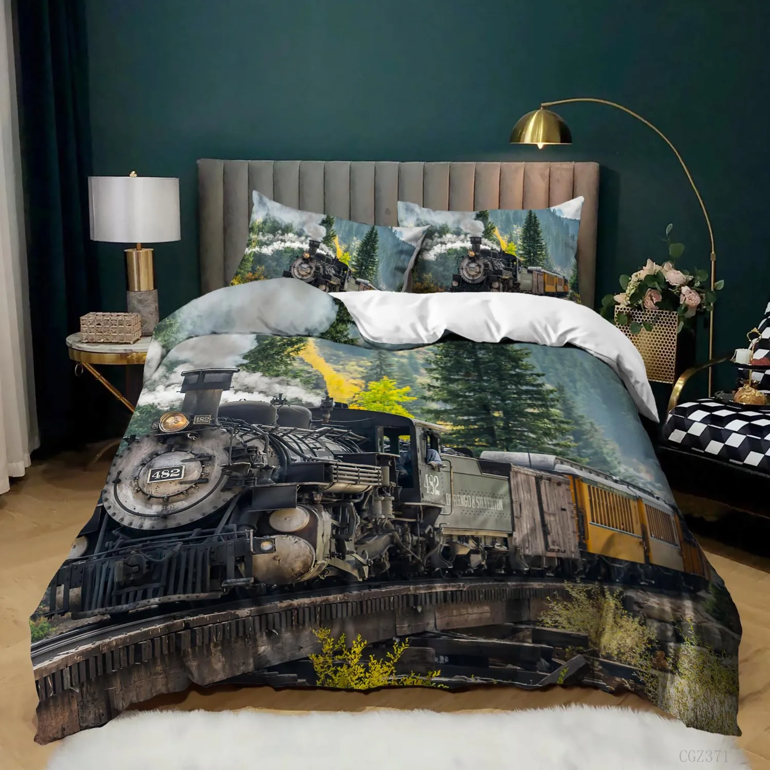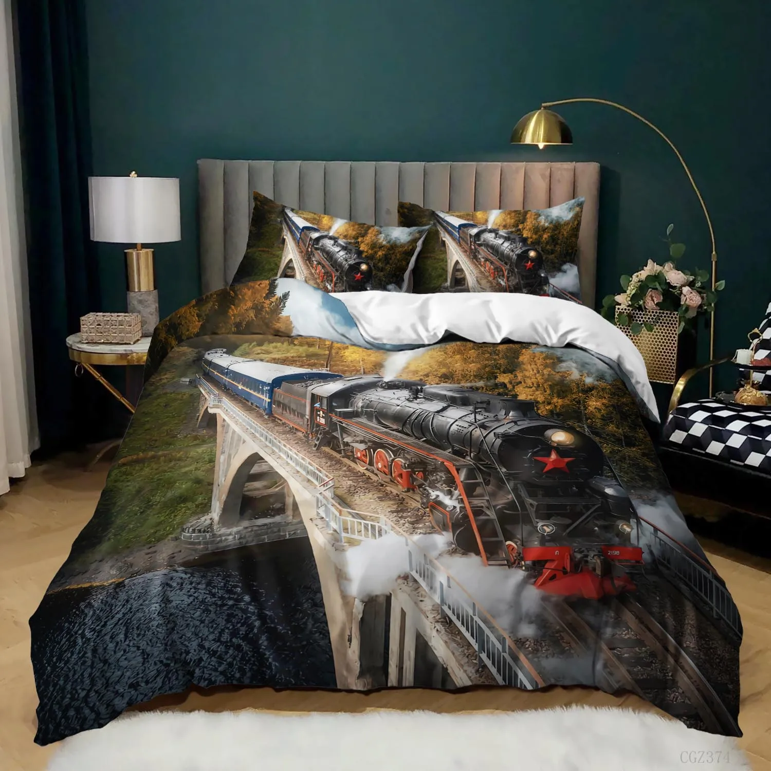 Комплект постельного белья с рисунком поезда, пододеяльник, наволочка, 23 шт., размер Queen, King, пододеяльник для детей и взрослых