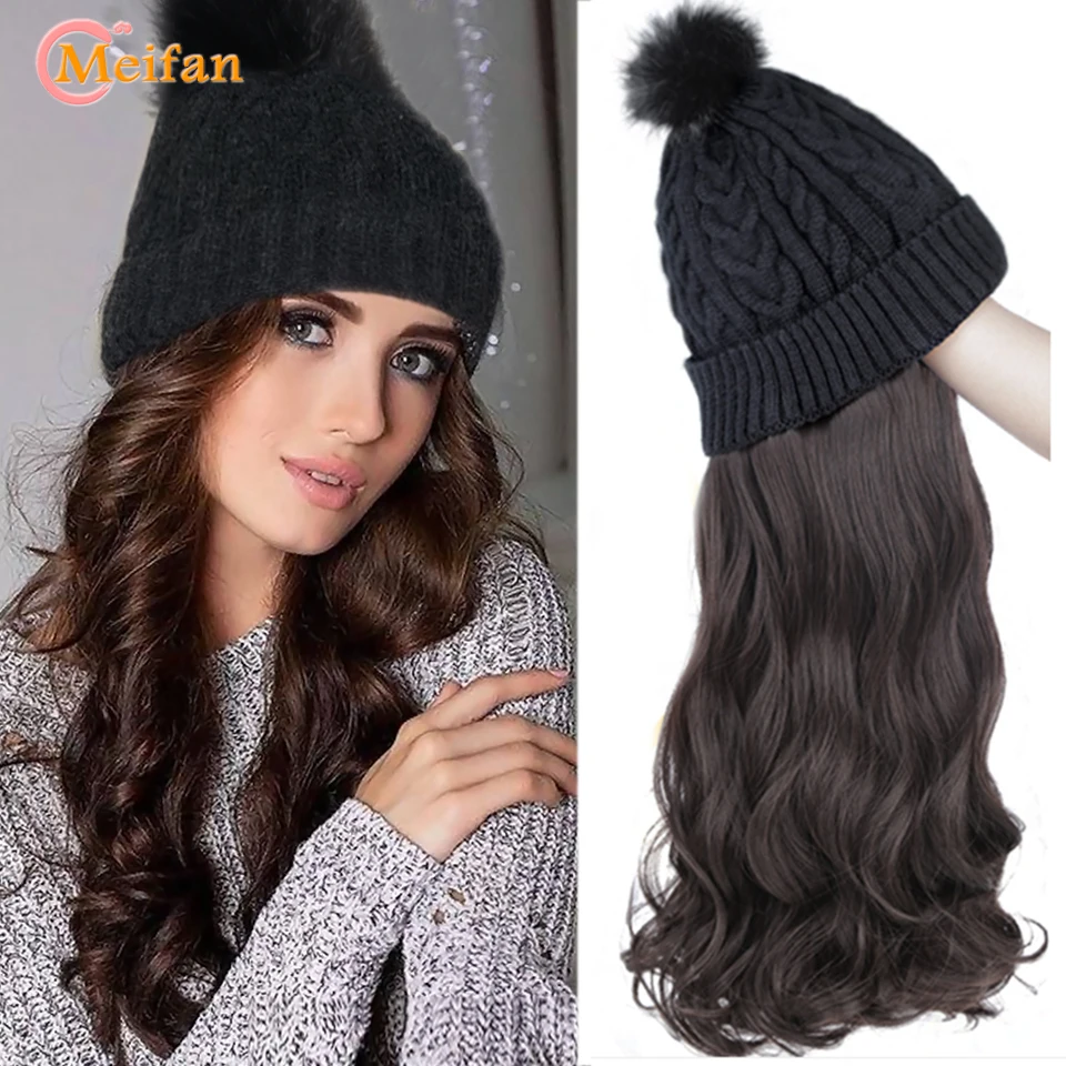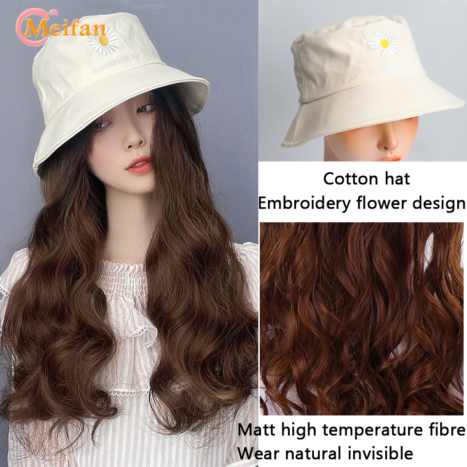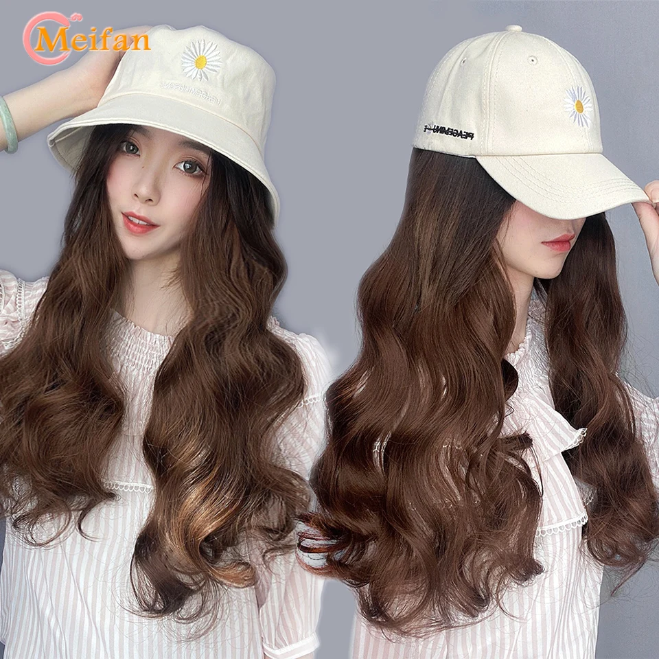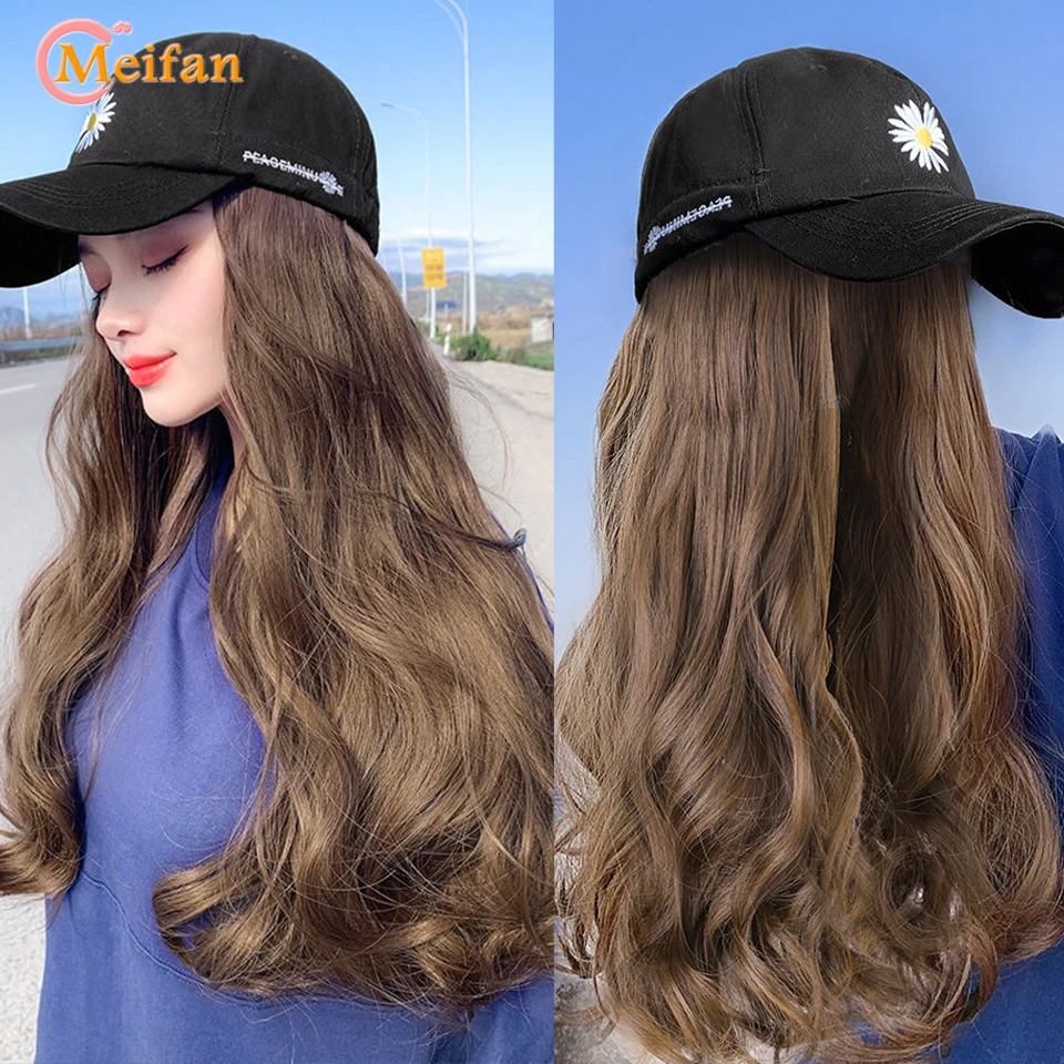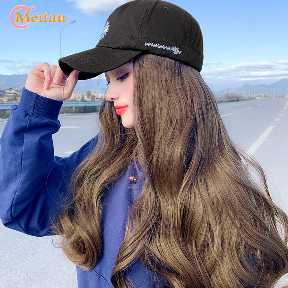 MEIFAN длинная синтетическая вышивка бейсбольная кепка парик натуральный черный коричневый волнистый парик естественное соединение Регулируемая шляпа парик для девушки вечерние