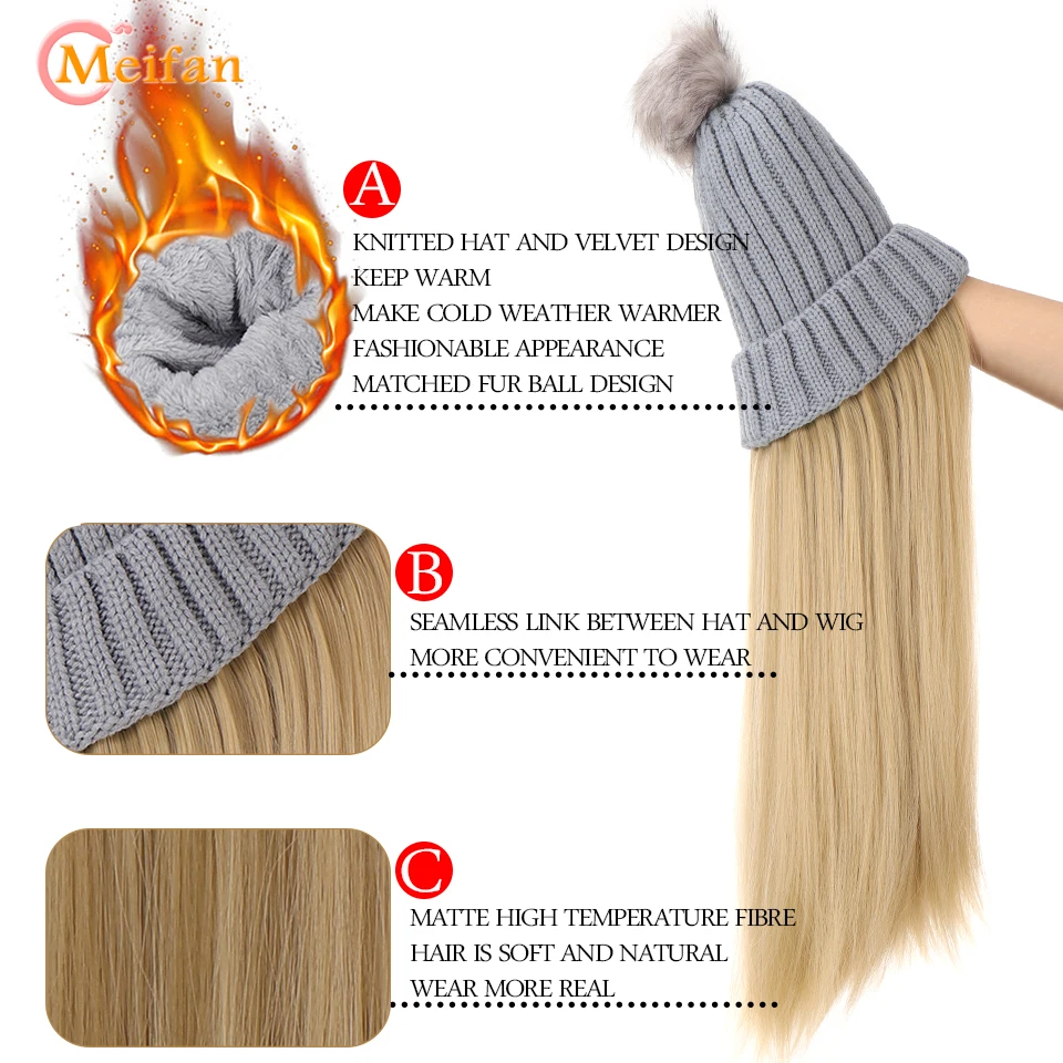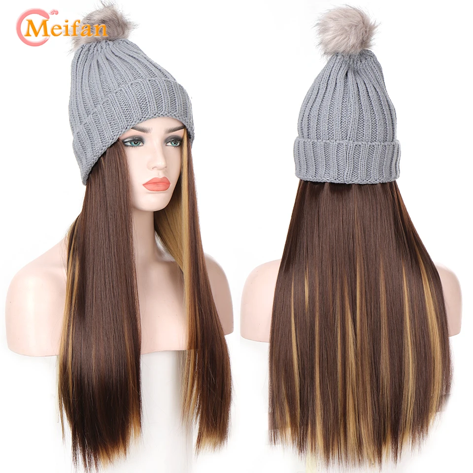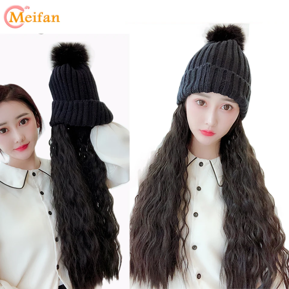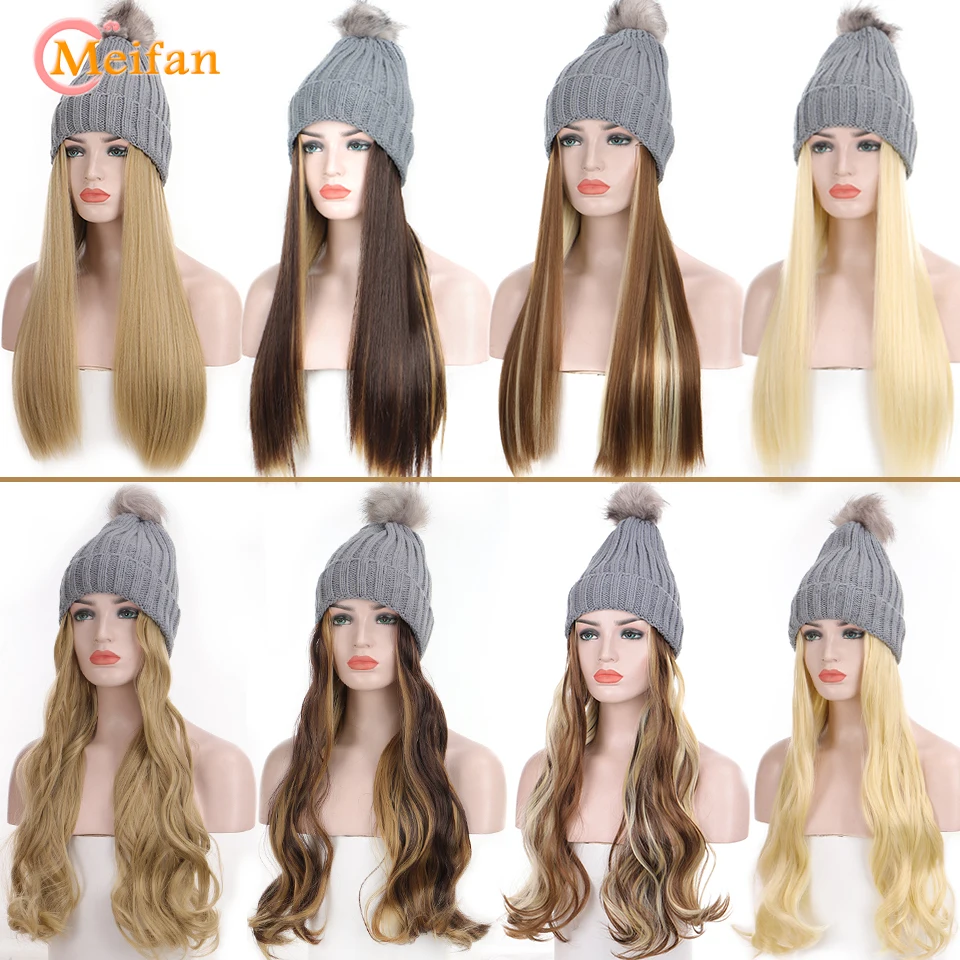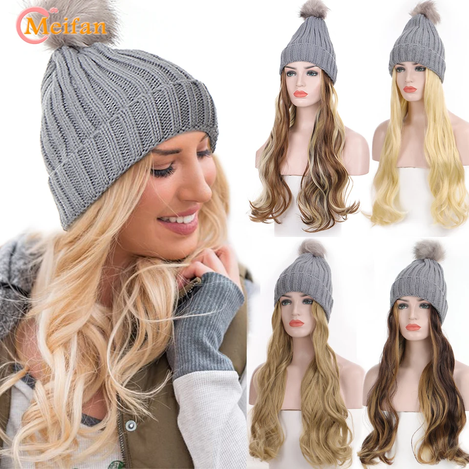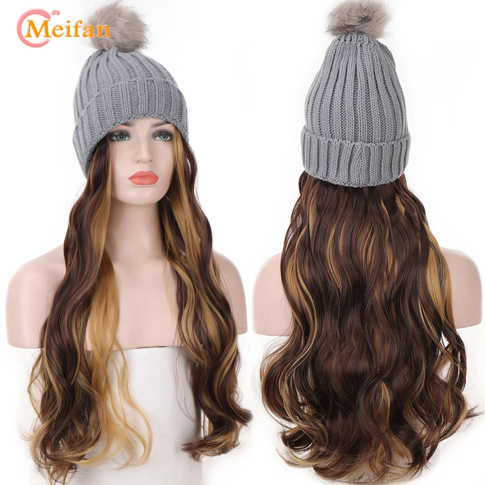 MEIFAN длинная синтетическая вышивка бейсбольная кепка парик натуральный черный коричневый волнистый парик естественное соединение Регулируемая шляпа парик для девушки вечерние
