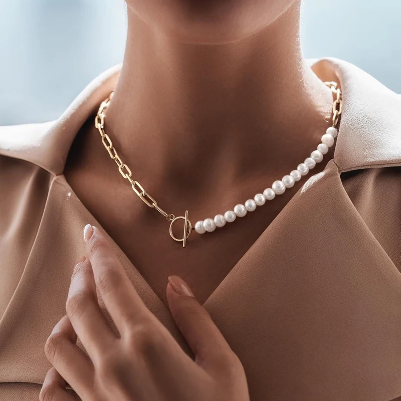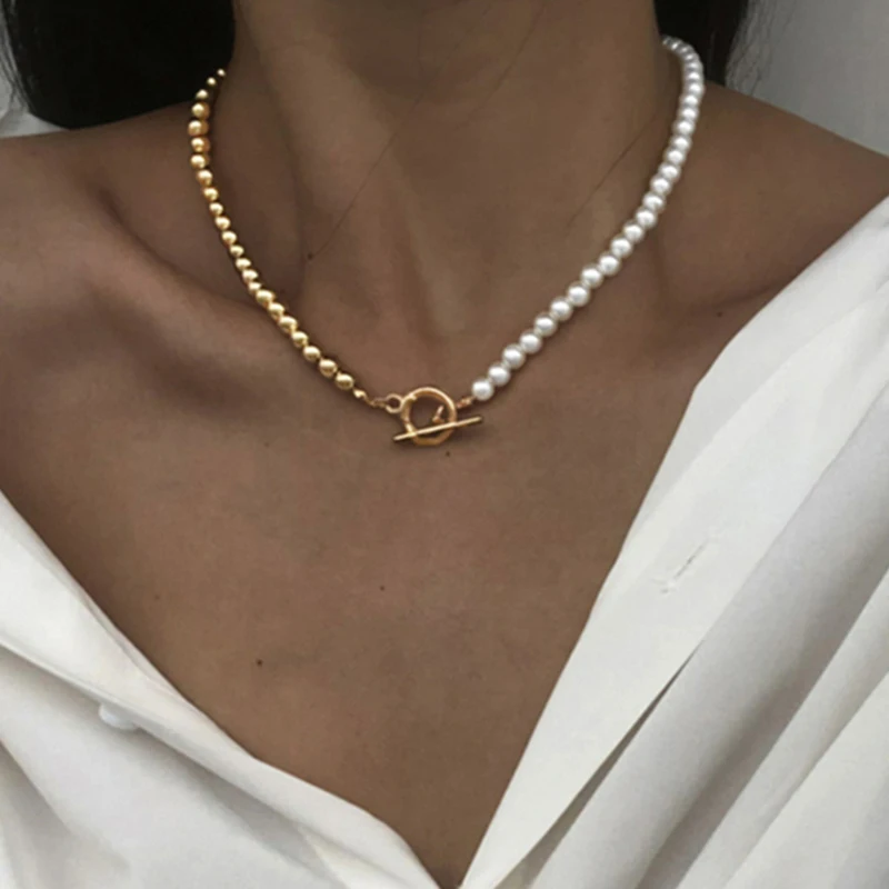 Женская цепочка с бусинами, классическое ожерелье из искусственного жемчуга с застежкой из бусин золотого цвета, 2021