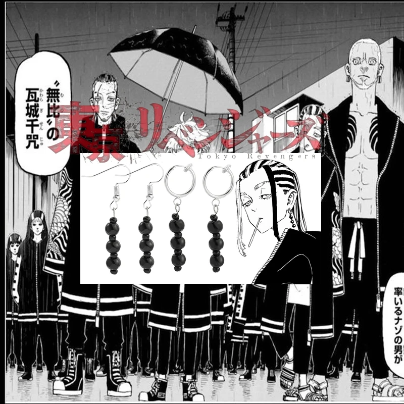Серьги-подвески Imaushi Wakasa из аниме Токийский мстители, черные бусины, модные ювелирные украшения для фанатов, реквизит, аксессуары, подарки