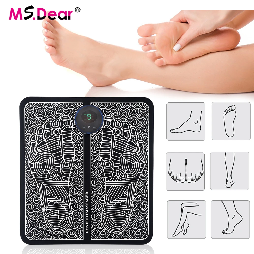 EMS Массажный коврик для ног, физиотерапия, многонаправленный массаж ног, электрическая мышечная стимуляция, сжигание мышц, расслабление тела, стимулирование кровообращения, облегчение боли, снижение усталости, уход за здоровьем, зарядка через USB, 6 режимов, 9 уровней интенсивности