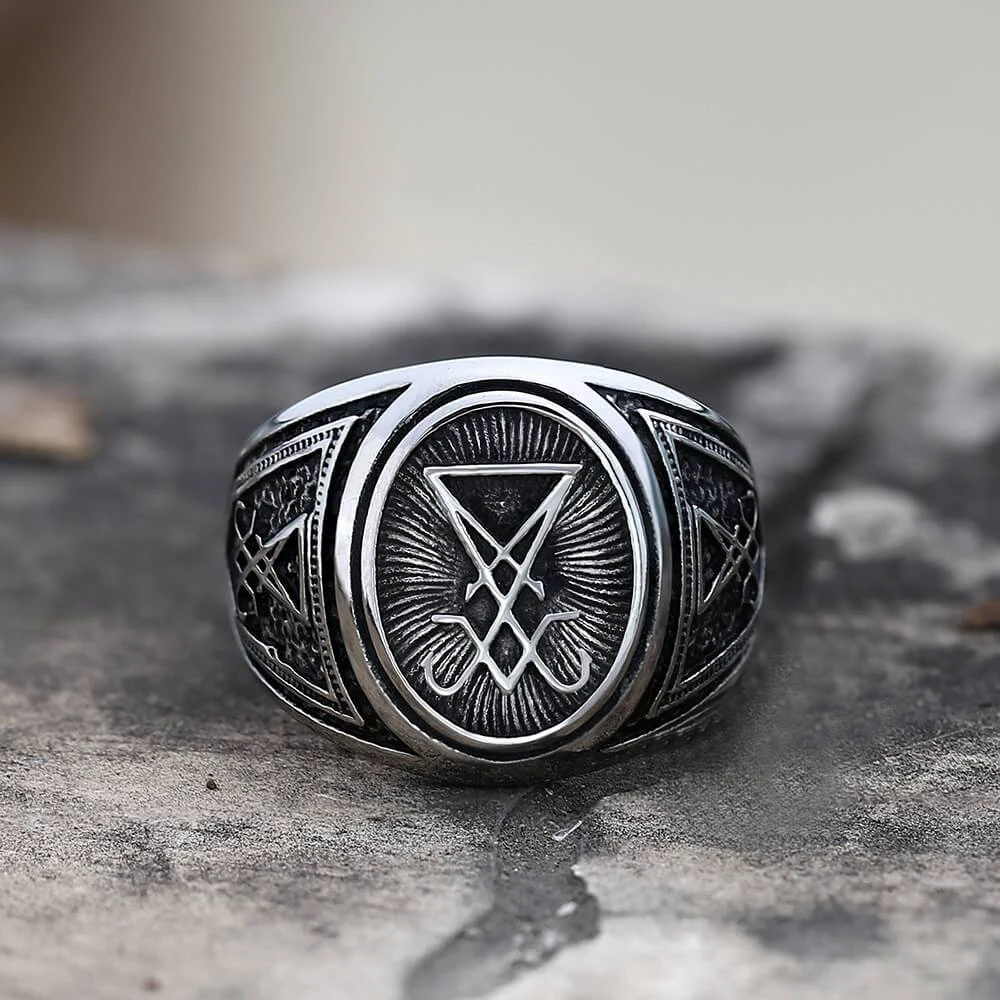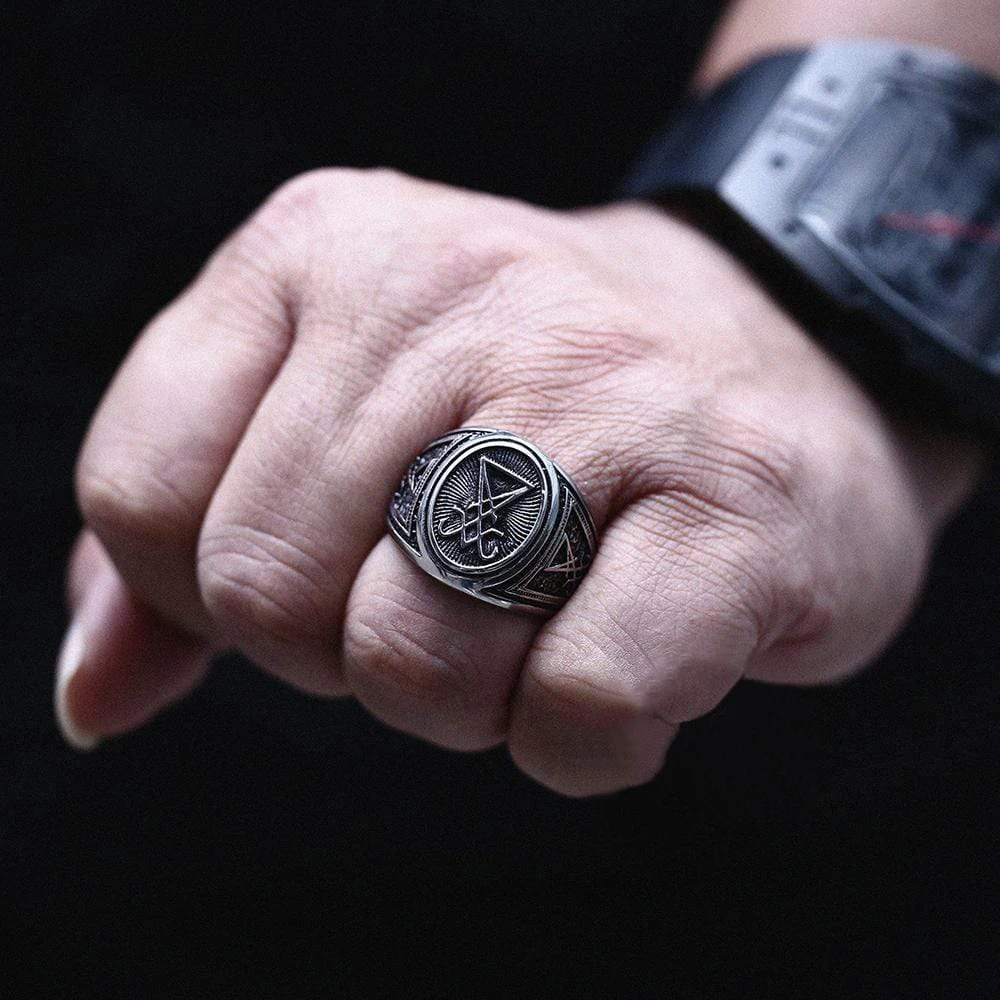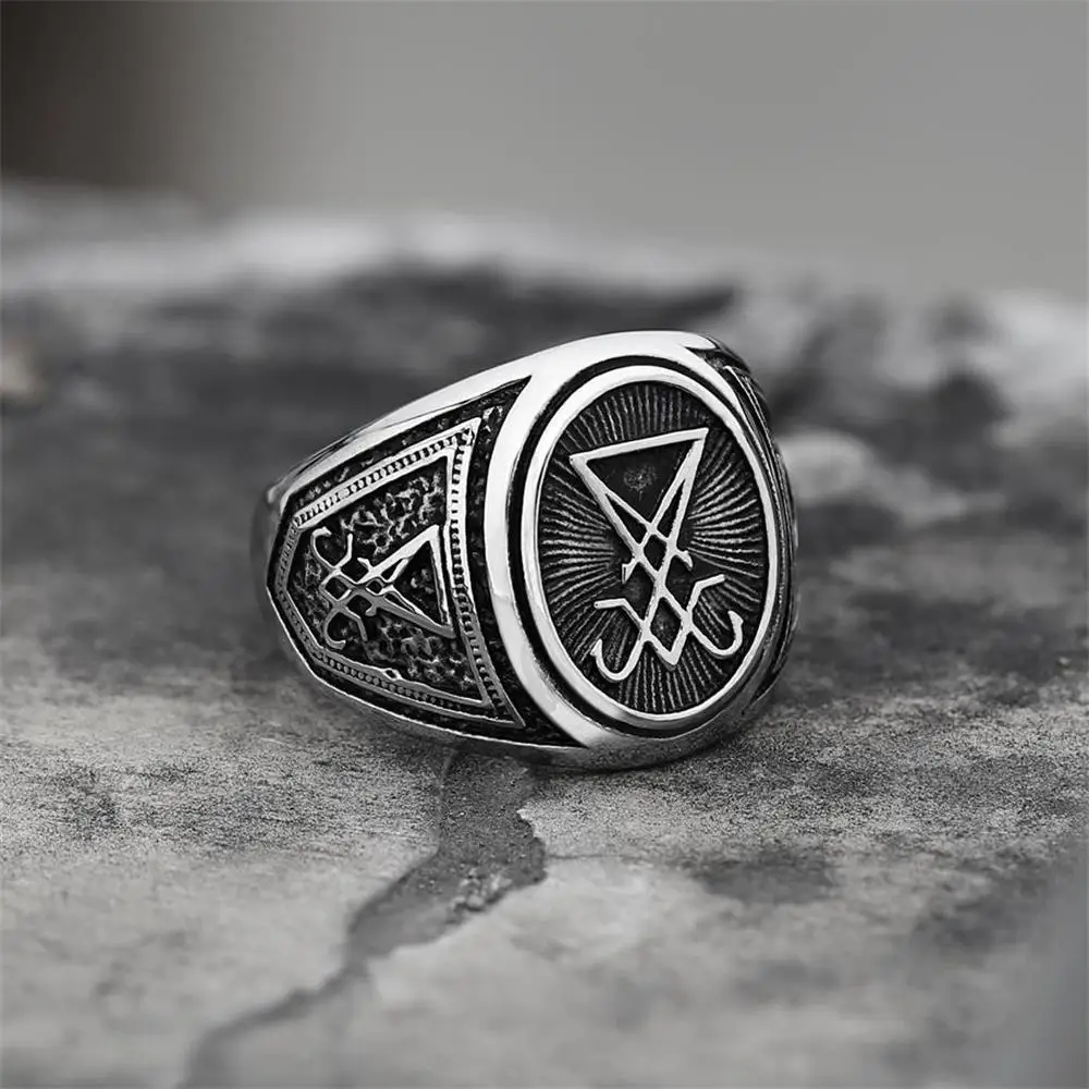 Винтажное мужское кольцо с знаком Sigil of Lucifer, ретро дьявол, печать сатаны, кольца с черепом из нержавеющей стали, готические окультивационные ювелирные изделия Baphomet