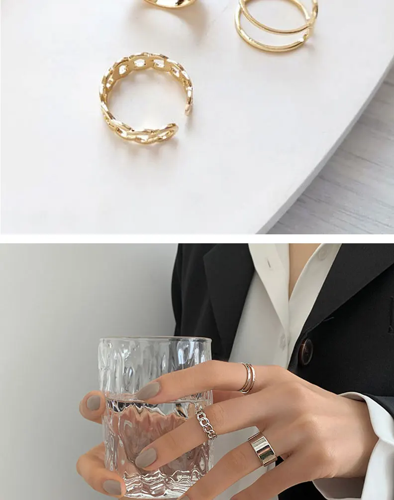 Корейский набор колец с открытым звеном цепи для женщин и девочек, модное Модное Элегантное Золотое кольцо, свадебные ювелирные изделия, вечерние аксессуары