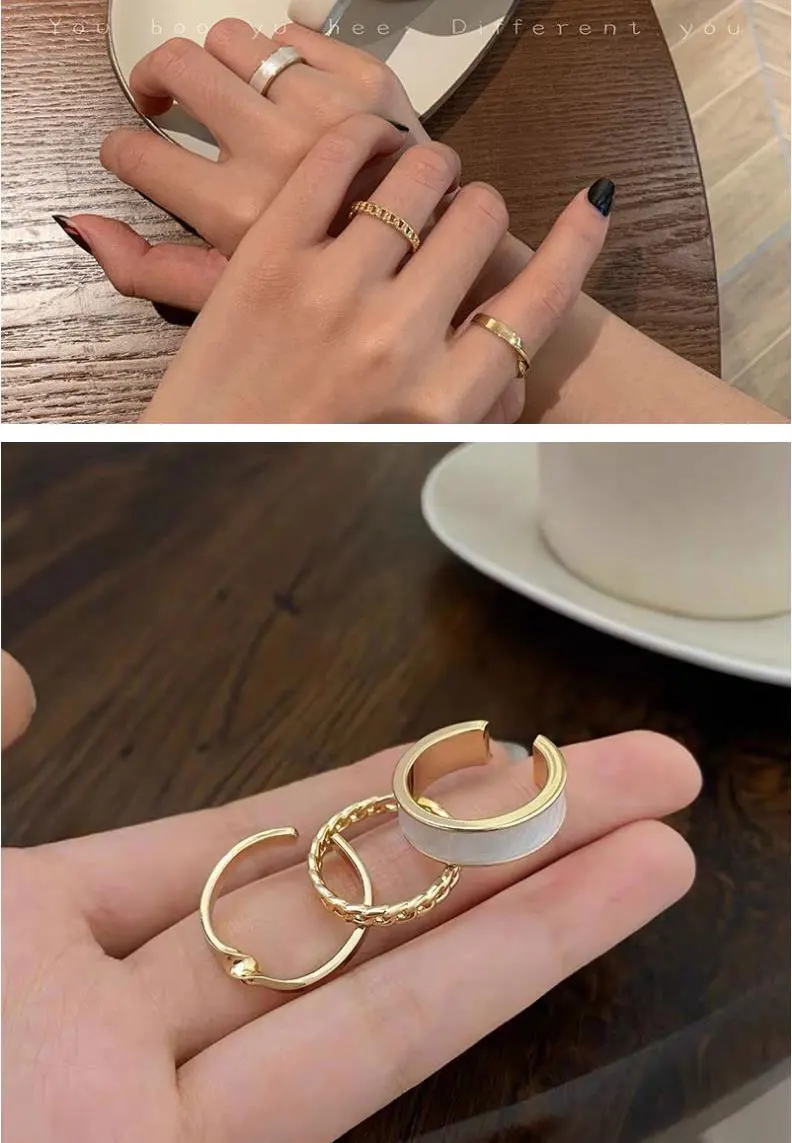 Набор колец с открытыми звеньями в Корейском стиле для женщин и девушек, модные элегантные золотые кольца, свадебные украшения, вечерние