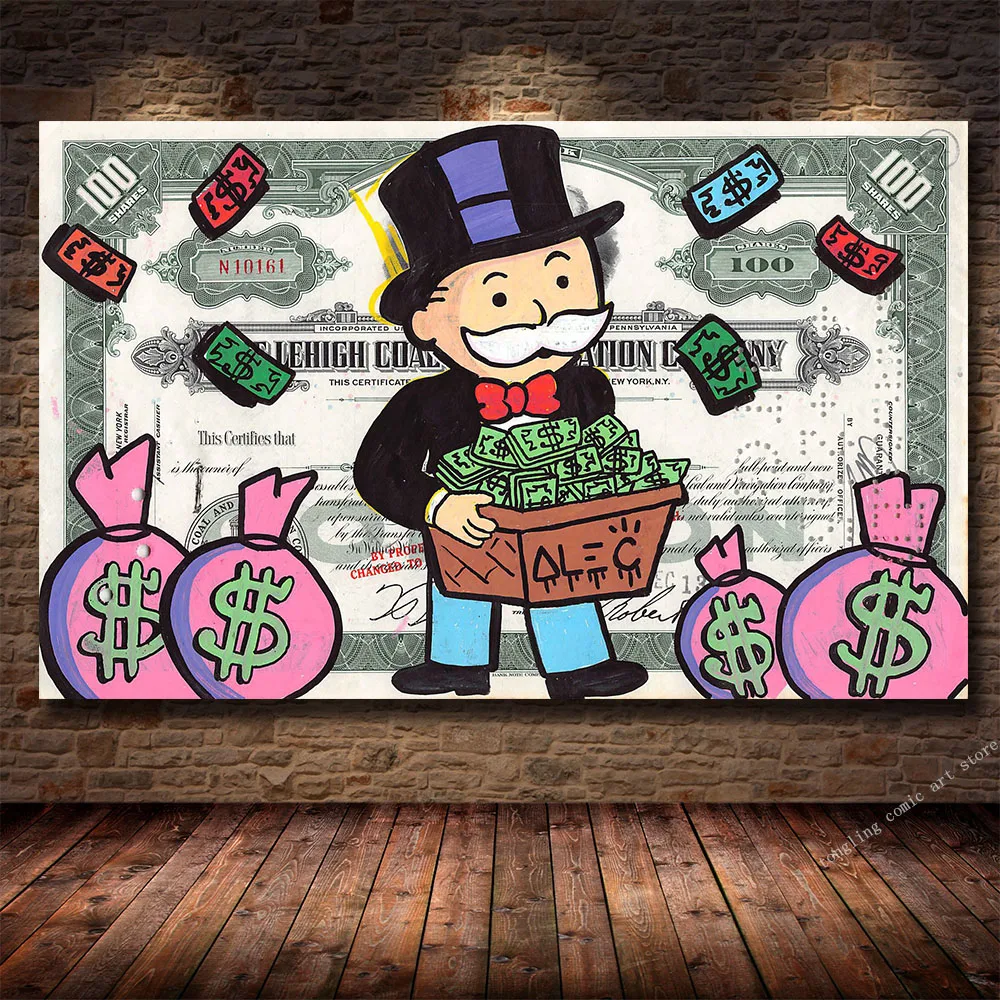 Alec Монополия денег граффити искусство фотообои Монополия доллар Настенная картина Современный домашний декор