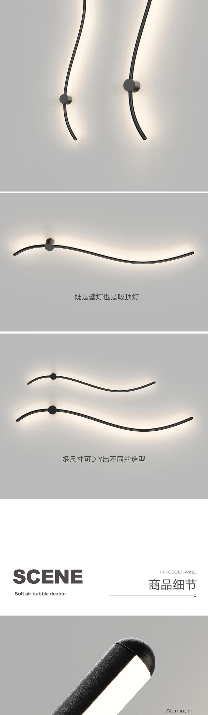 Длинная настенная лампа S-образной формы, скандинавский минималисти...