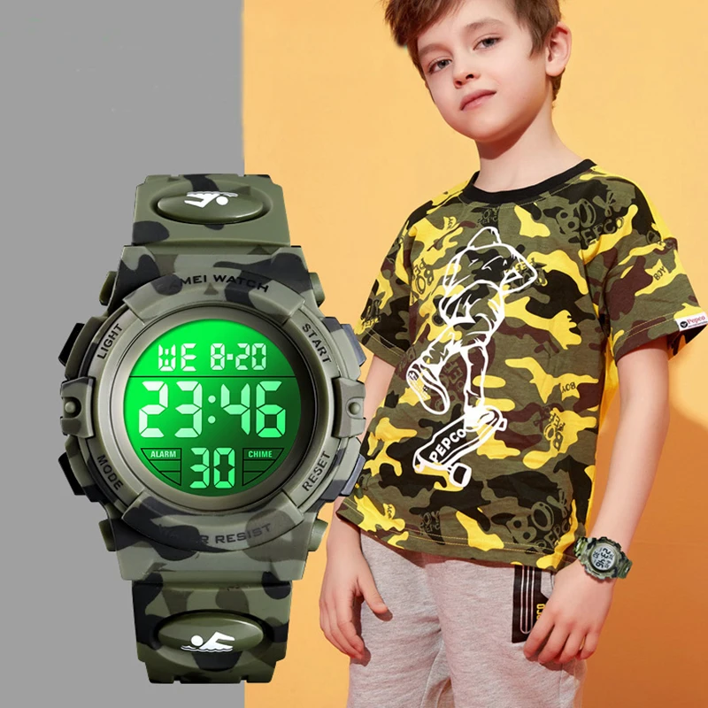 Детские Водонепроницаемые цифровые часы с датой для мальчиков и девочек, светодиодные спортивные наручные часы, детские часы с сигнализацией для студентов, военные часы, подарок