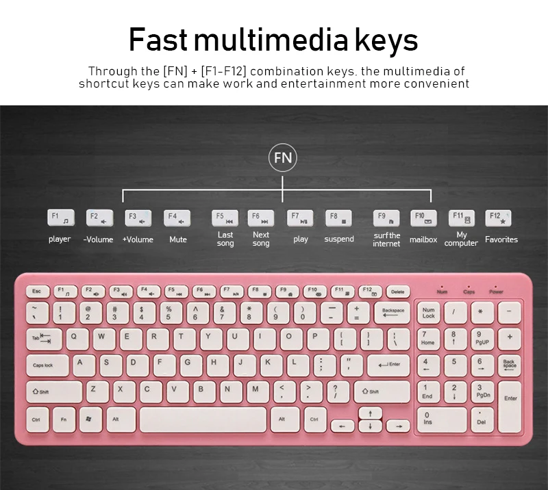 Беспроводная клавиатура, мышь, комбинированный набор, розовый, сини...