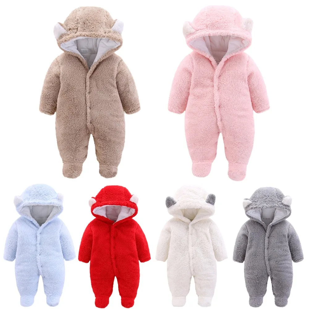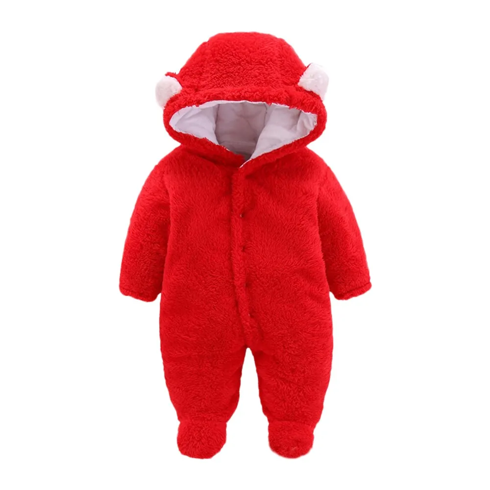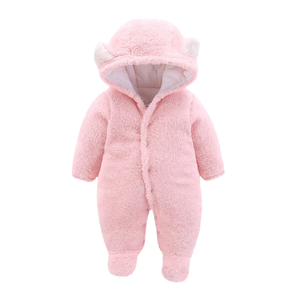 Комбинезон детский зимний однотонный с капюшоном и ушками