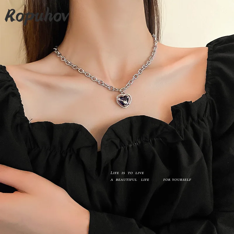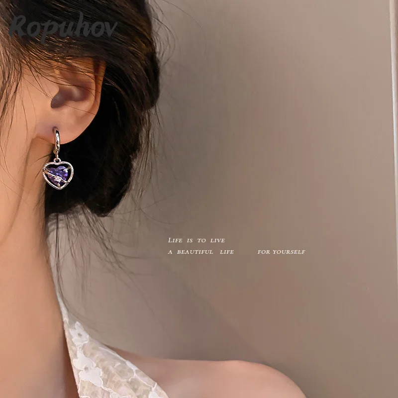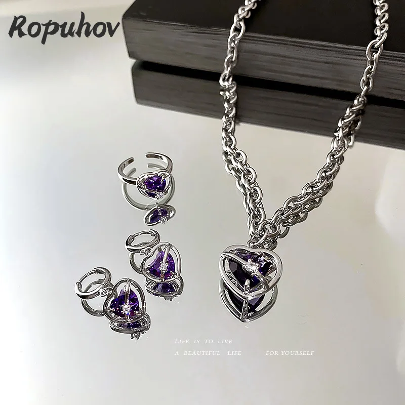 ROPUHOV 2021 корейский модный фиолетовый любовь Кристалл бриллиант серьги ожерелье кольцо модный персонализированный ожерелье на шею