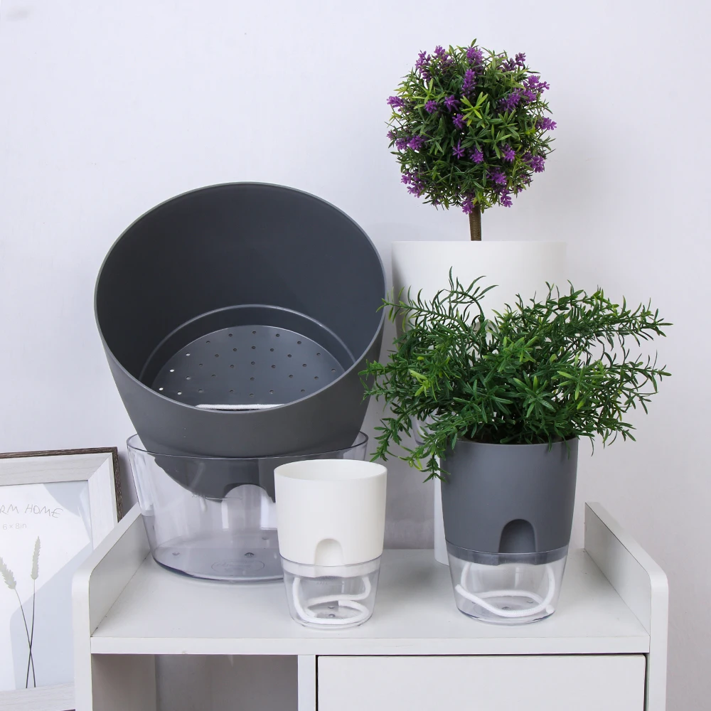 Цветочный горшок ручной работы, 2 слоя, самополив, с контейнером для воды, круглый цветочный горшок, Декор для дома и сада, цветочный горшок с системой полива