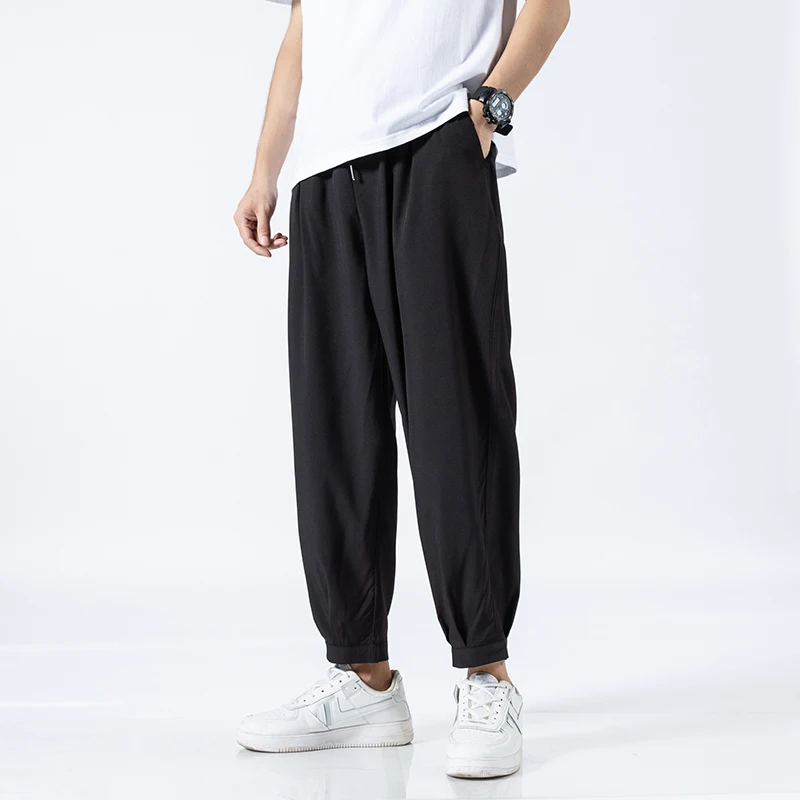 Новинка 2021, легкие повседневные брюки из ледяного шелка, дышащие брюки, мужские спортивные Прямые брюки для студентов, брюки девять точек