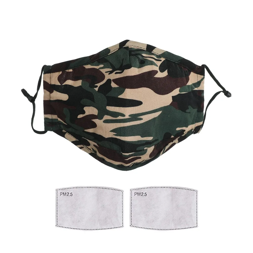 Маска Защитная для лица Pm2.5 мужская с фильтром и камуфляжным принтом