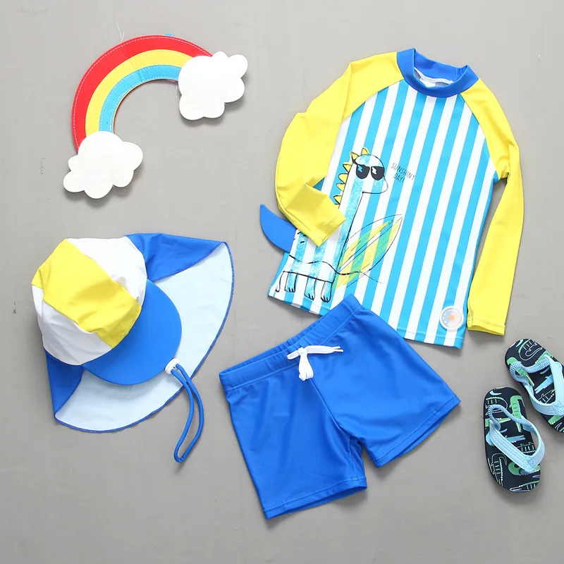 Детский купальный костюм с принтом динозавра для мальчиков, с длинными рукавами, желтый UPF50 + УФ-купальник для мальчиков, купальный костюм для детей, От 2 до 11 летИнформация о продуктеС UPF 50 + защита от солнца с мультяшным принтом динозавра и акулы, этот набор Рашгард держит его милым и защищенным весь день.Комплект из 3 предметов с крышкойДлинный рукав и короткий рукавUPF 50 + защита от солнцаЭкспорт стандартного качестваСтирка и уходРучная стирка с водой до 10 ℃Стирать отдельно с другой одеждойБез замачивания, без мыла, без моющего средства, без выпечкиЛиния сухой