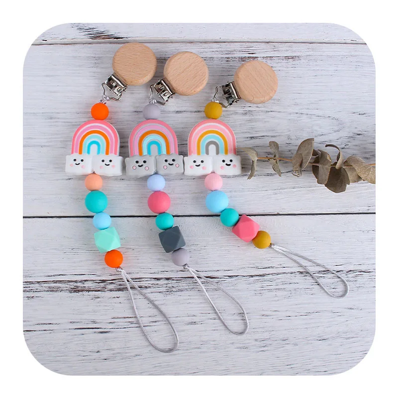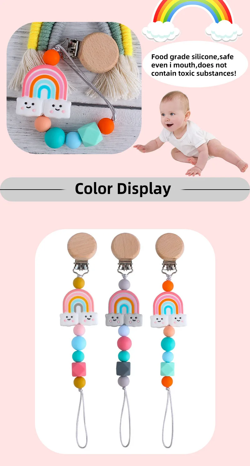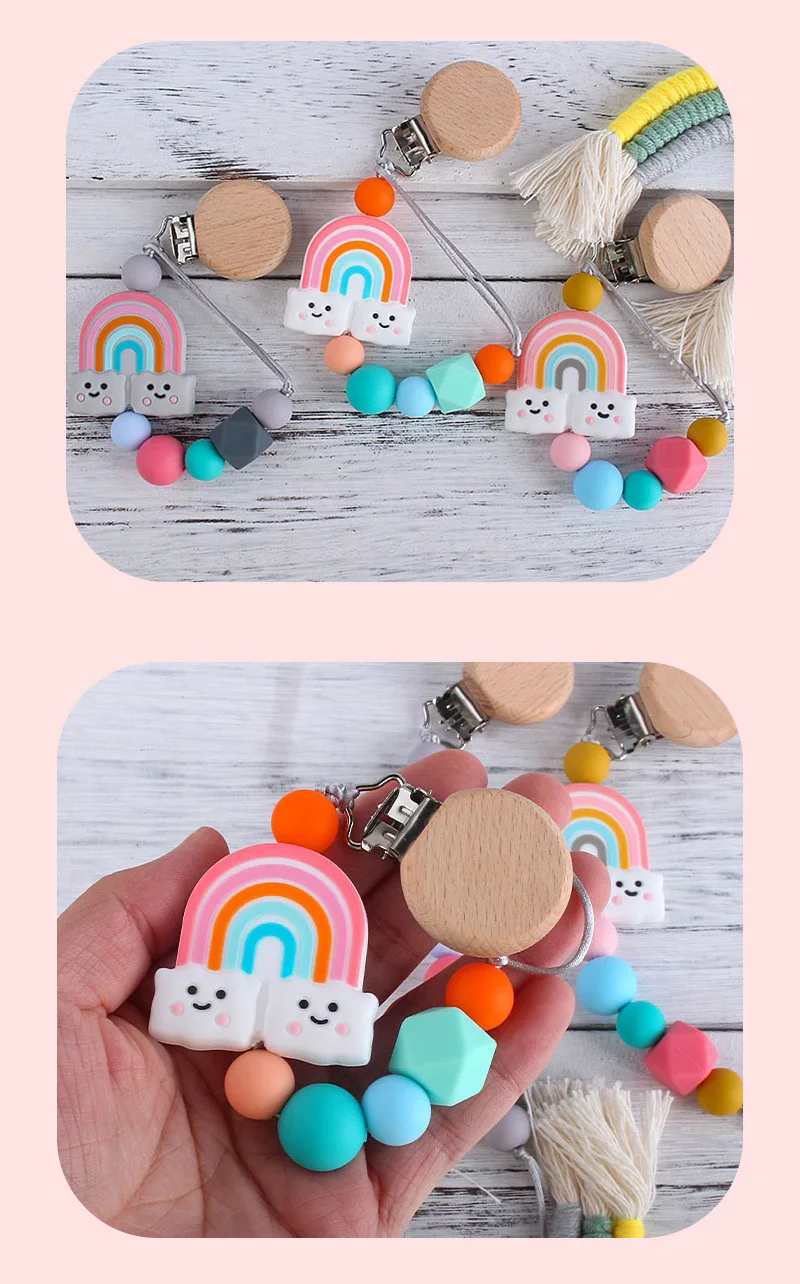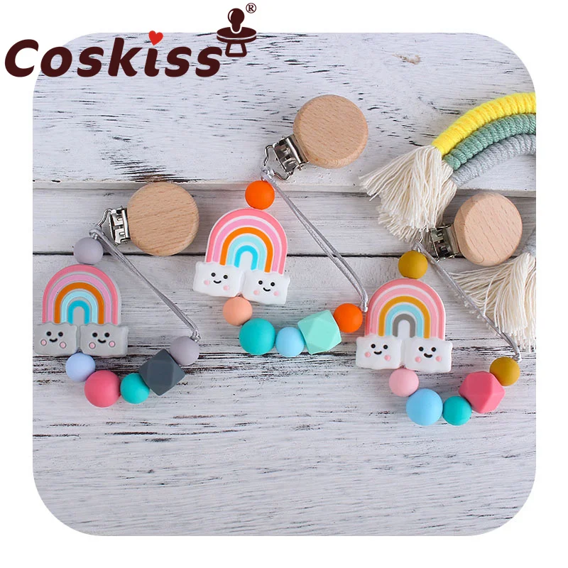 Coskiss, 1 шт., детская силиконовая цепочка для соски, радужная детская игрушка для прорезывания зубов, жевательная игрушка