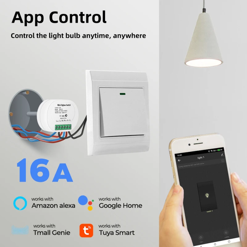 Умный выключатель Tuya Mini Zigbee, двухсторонний выключатель 16 А, не требует нейтрального провода, работает с Alexa Google Home